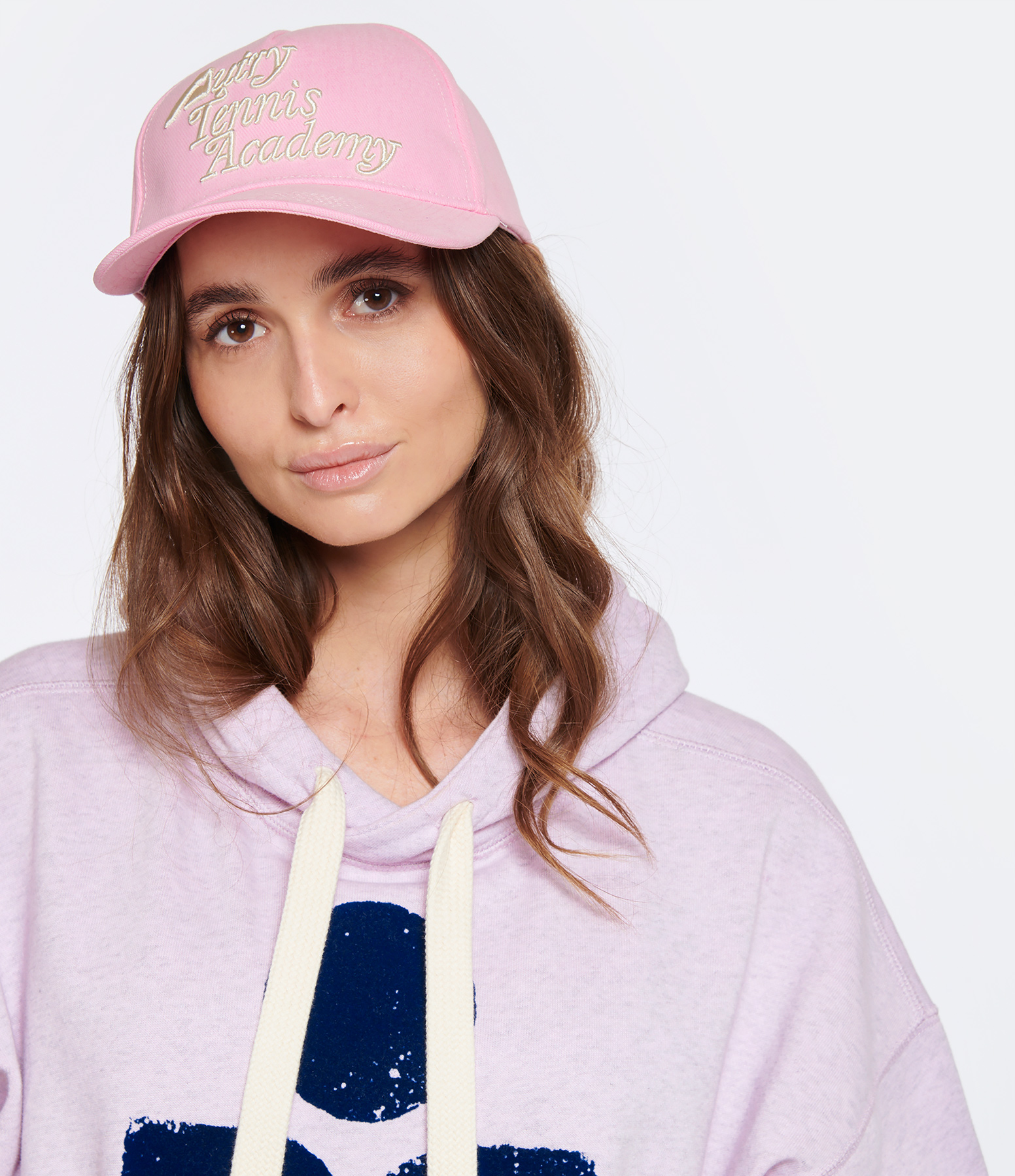 Casquette en coton rose, avec inscription brodée en blanc "AUTRY TENNIS ACADEMY". Languette réglable à l'arrière. Bande de propreté sur l'intérieur.