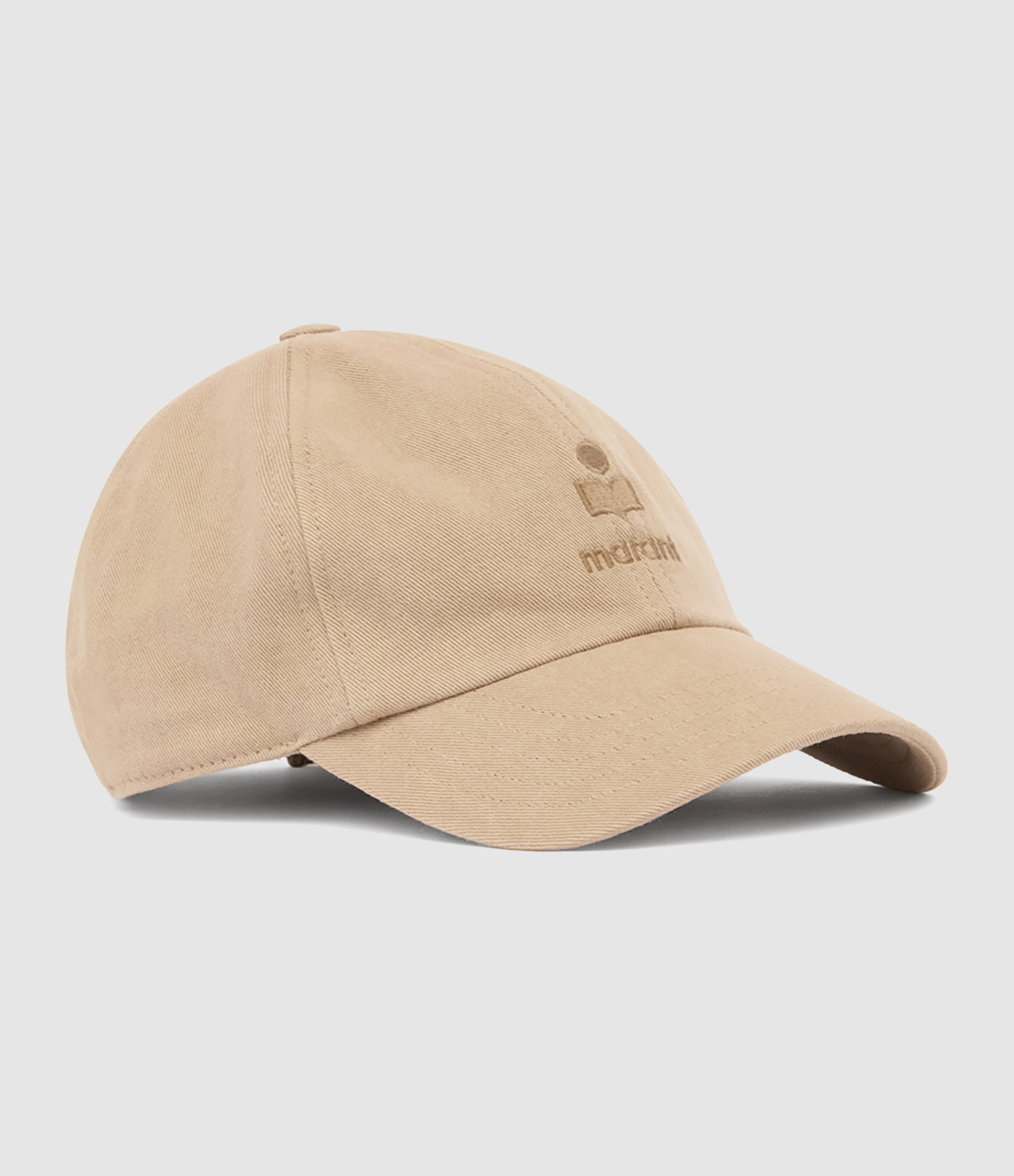 Casquette en coton beige. Logo "Marant" brodé ton sur ton sur le devant. Visière incurvée. Ajustable avec patte de réglage à l'arrière. Surpiqûres ton-sur-ton.