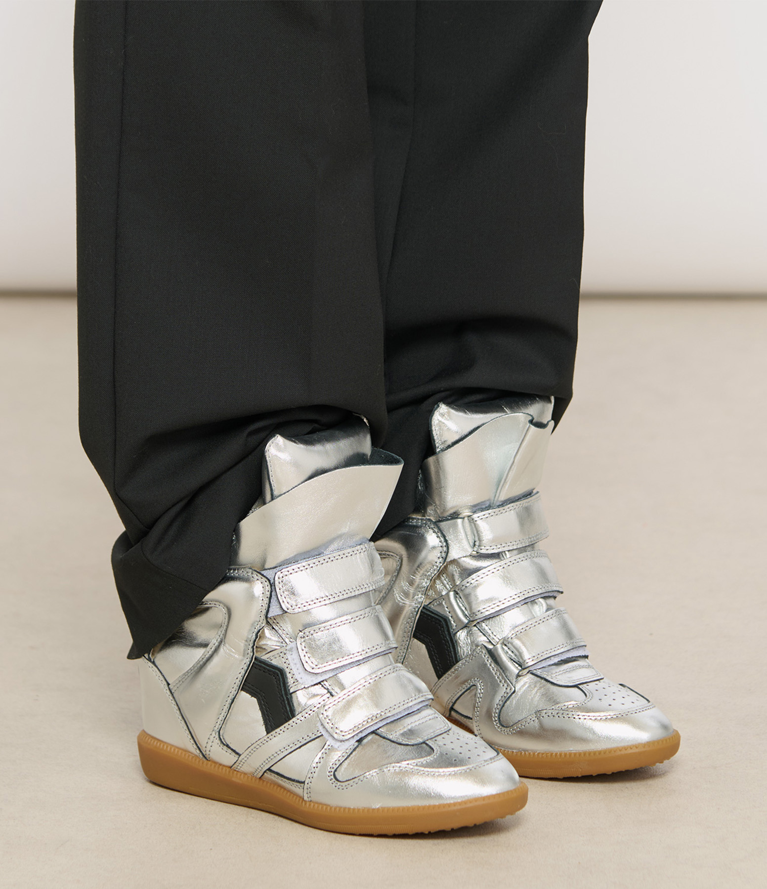 Baskets Medalist Bicolore Cuir Blanc, Argenté