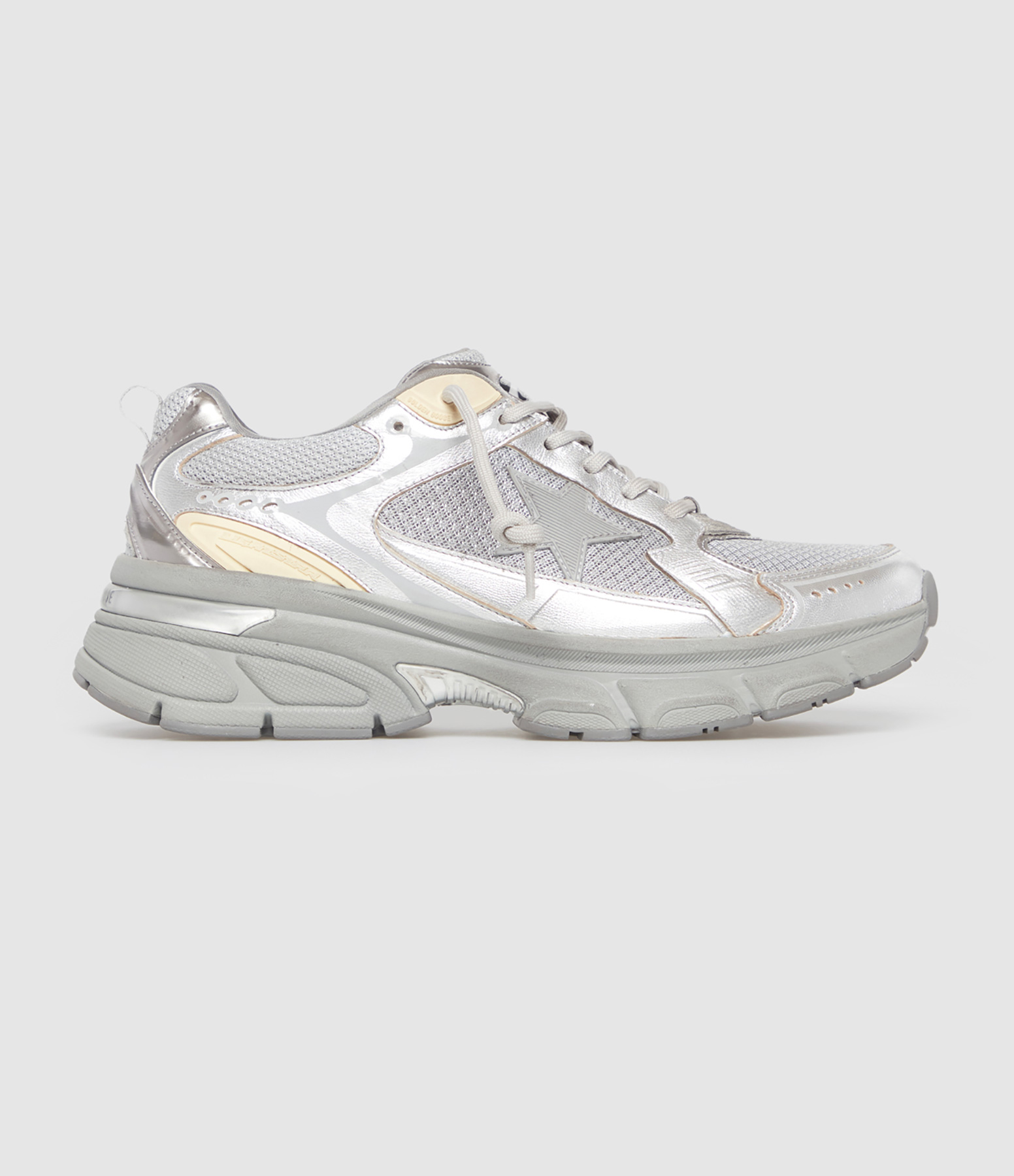 Baskets Homme Running Dad Cuir Gris Argenté Blanc