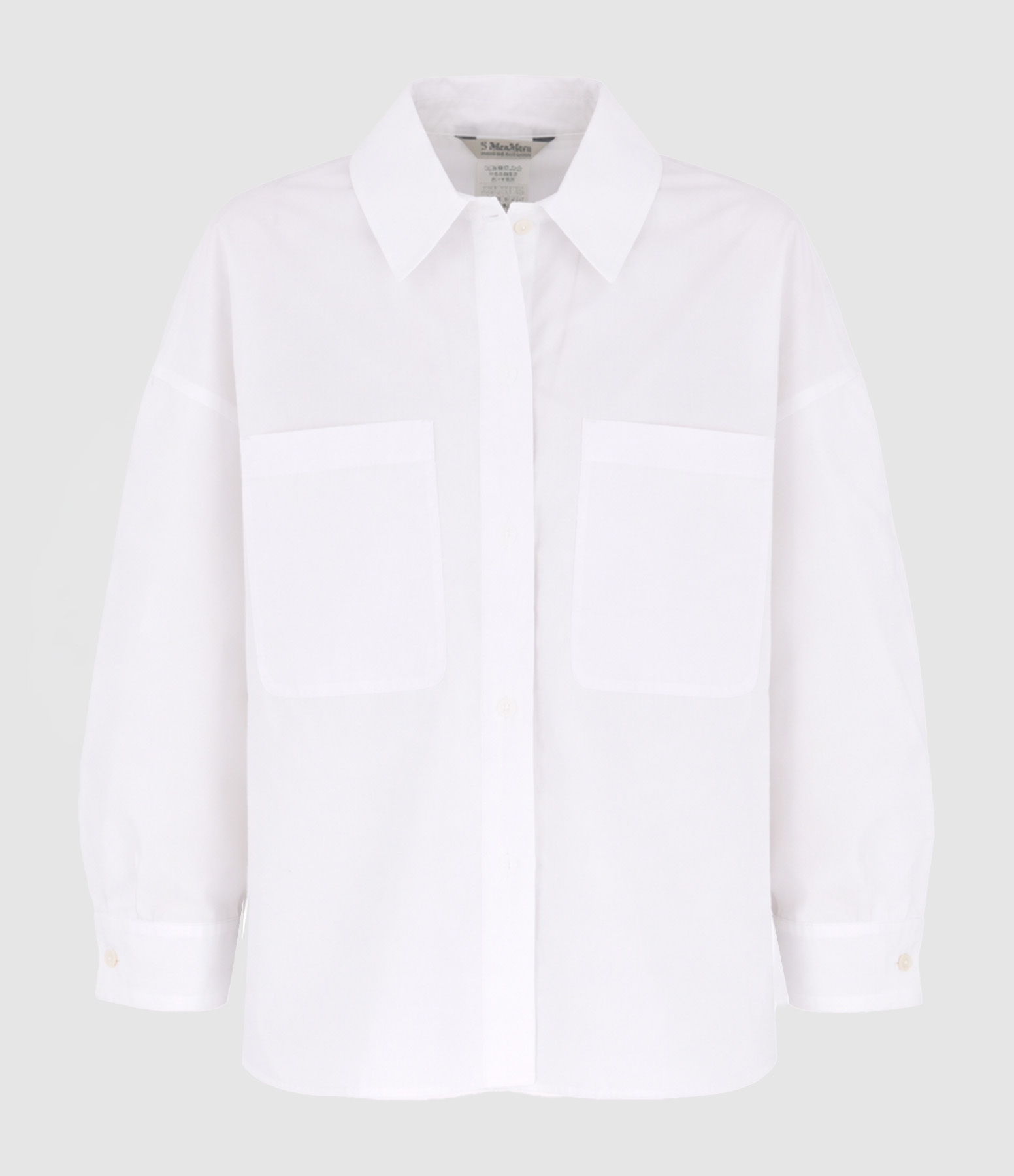 Chemise en pur coton, avec manches 3/4 effet bouffante, patte de boutonnage dissimulée et poches poitrine décoratives.