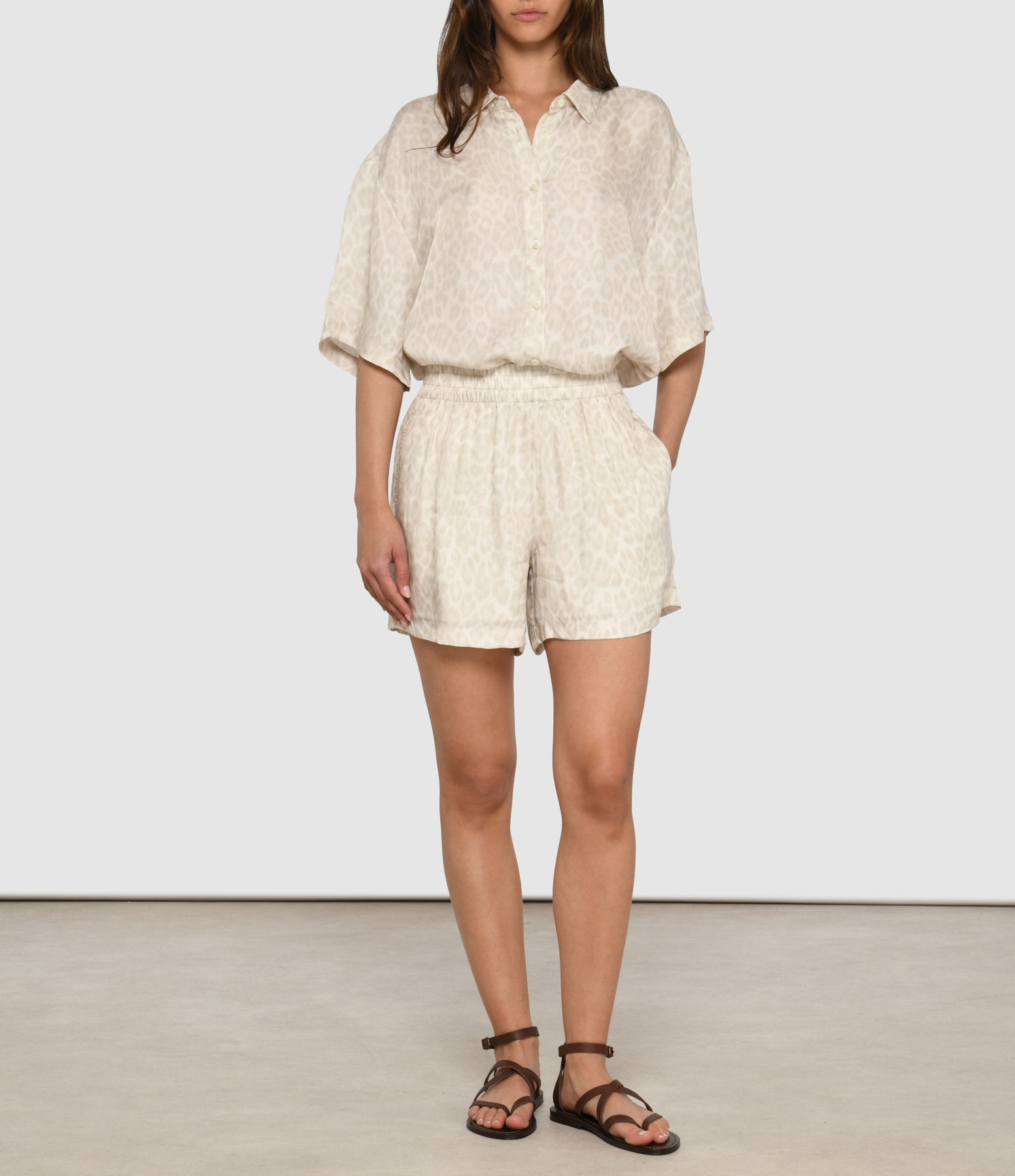 Chemise léopard coupe ample manches courtes. Col classique, avec boutonnage nacré.