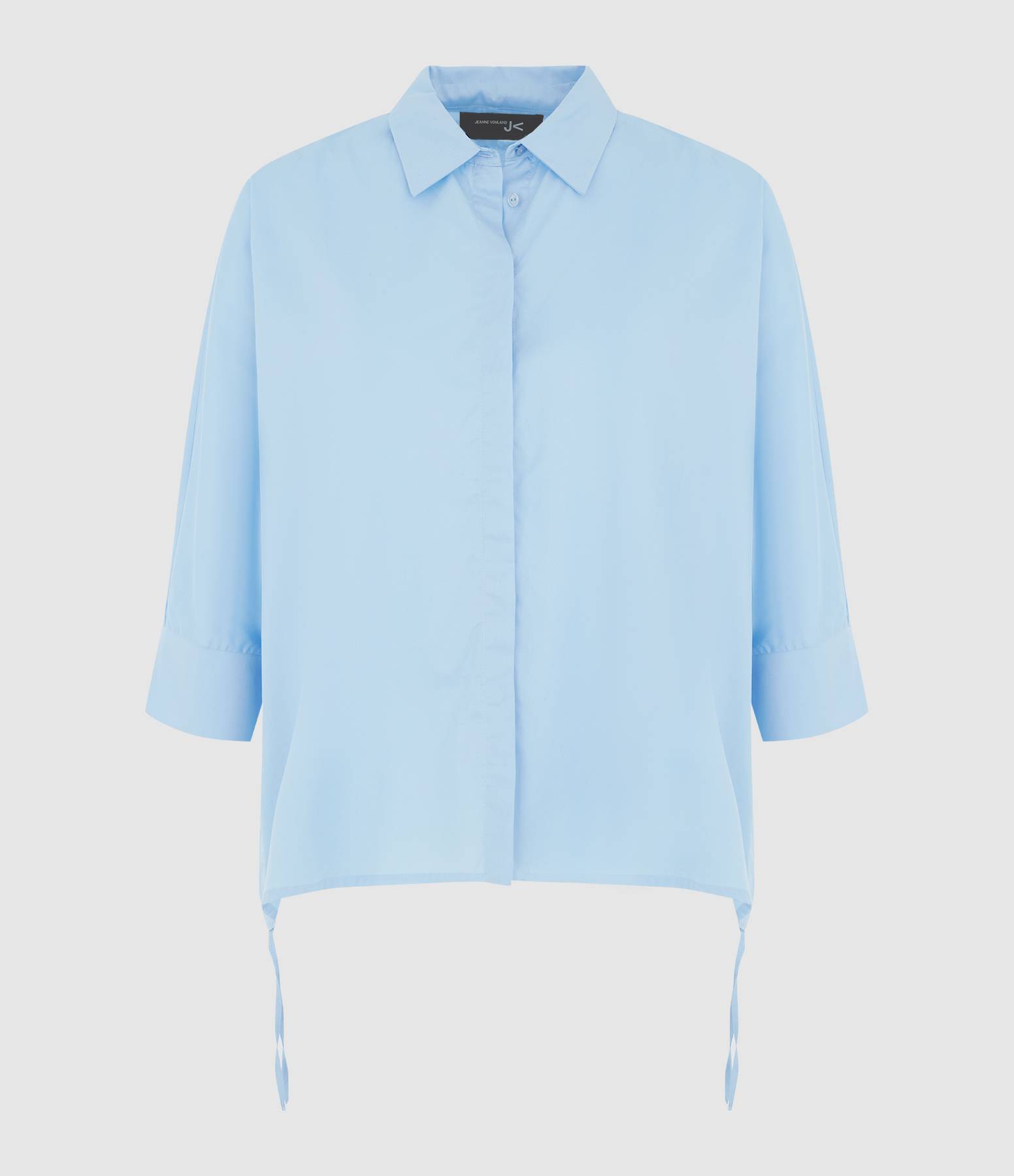 La chemise Prisca en popeline satin de coton bleu 100 % coton est un essentiel chic et léger. Sa coupe ample et sa base droite, réhaussée de liens de serrage offrent un tombé fluide ou plus structuré, tandis que le col chemise classique et les manches 3/4 apportent une touche de sophistication. La fermeture boutonnée cachée assure une silhouette épurée, et le logo JV brodé ton sur ton signe la pièce avec subtilité.