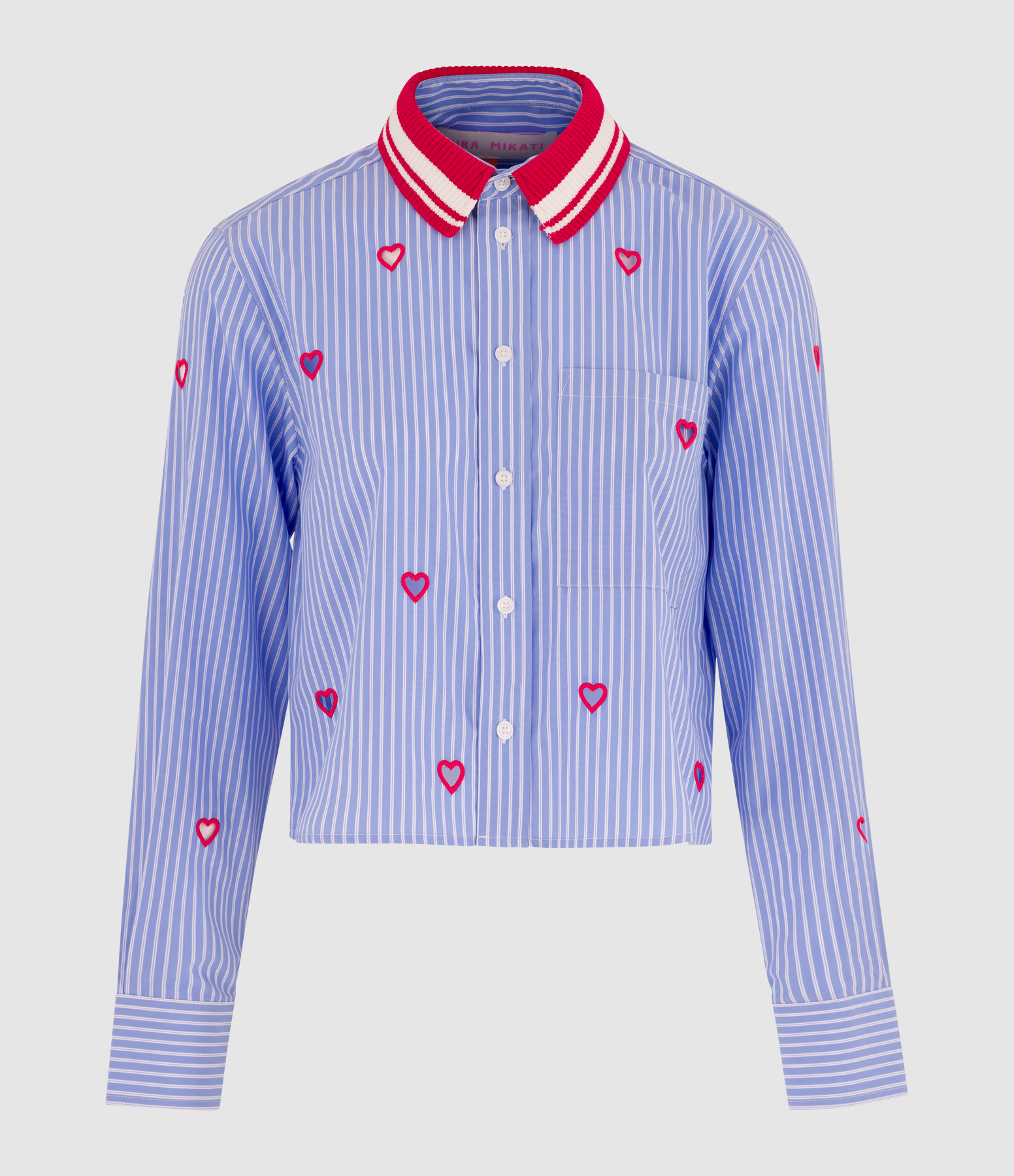 MIRA MIKATIChemise With Knitted Collar & Cut Out Hearts Blue/White Stripe