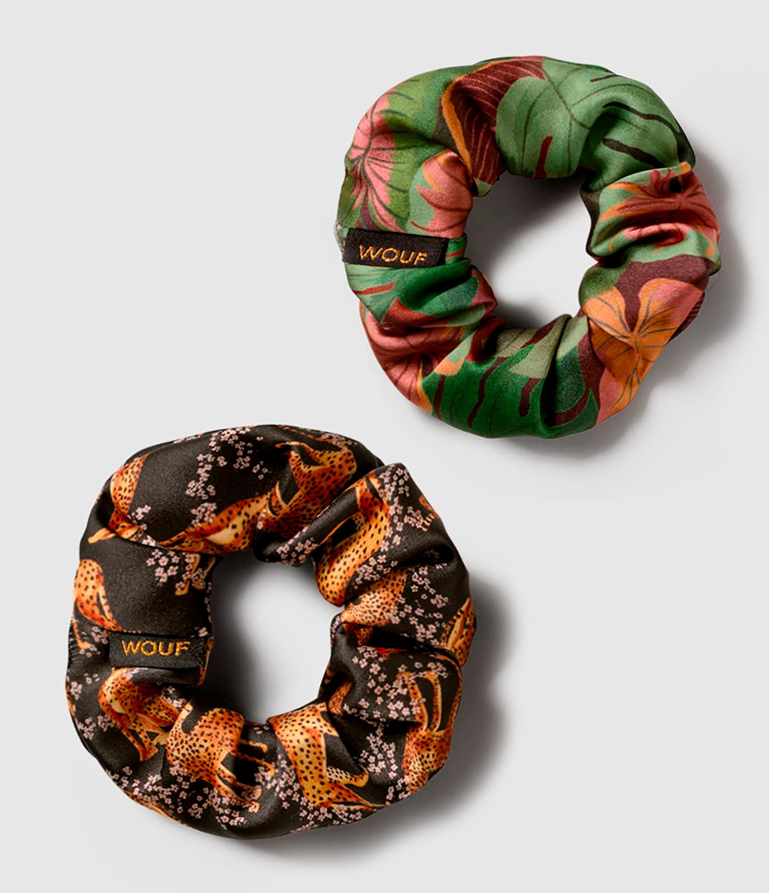 Lot de deux chouchous en satin recyclé à imprimé multicolore.