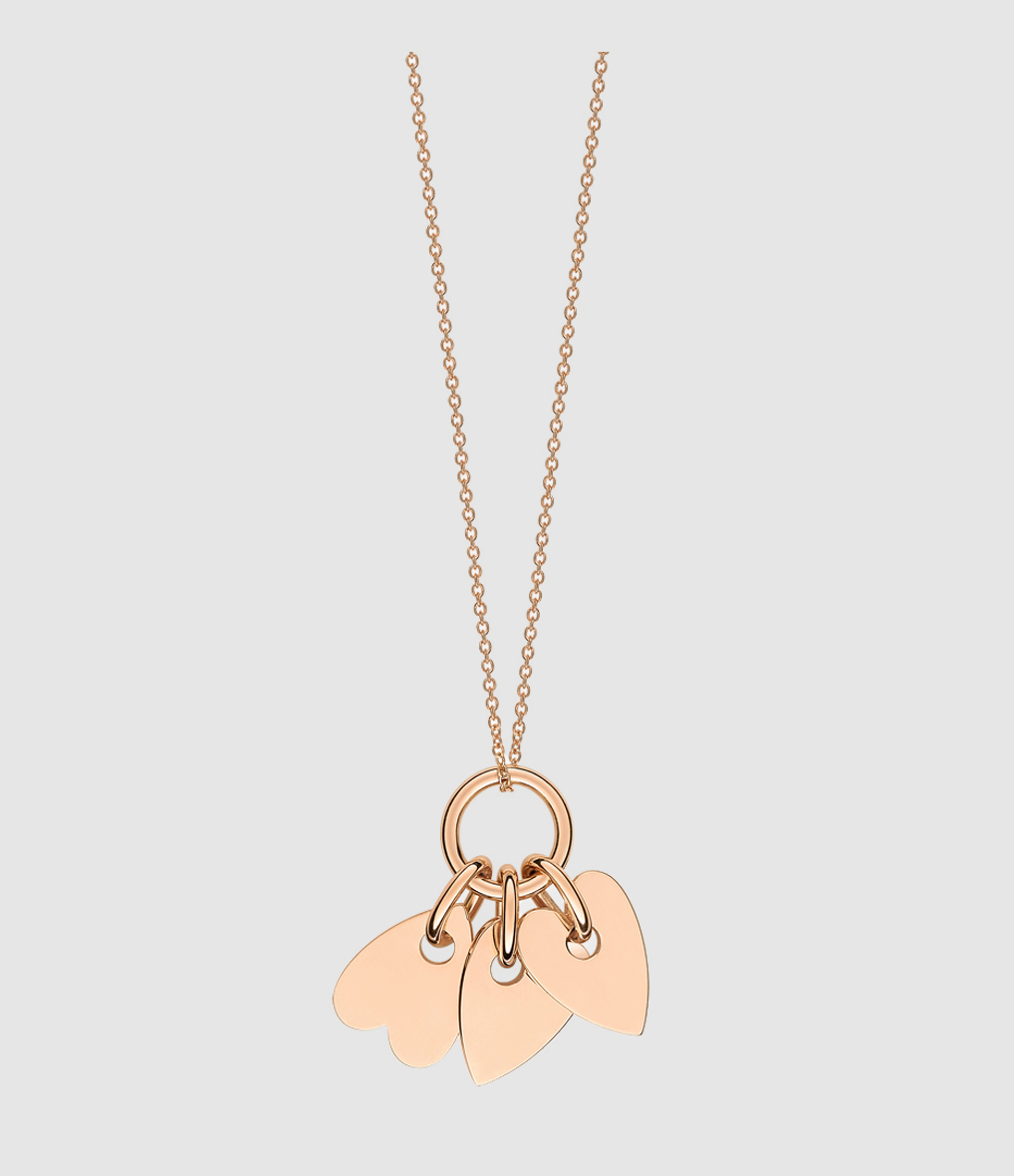 Collier sur chaîne boule en or rose avec trois pendentifs.