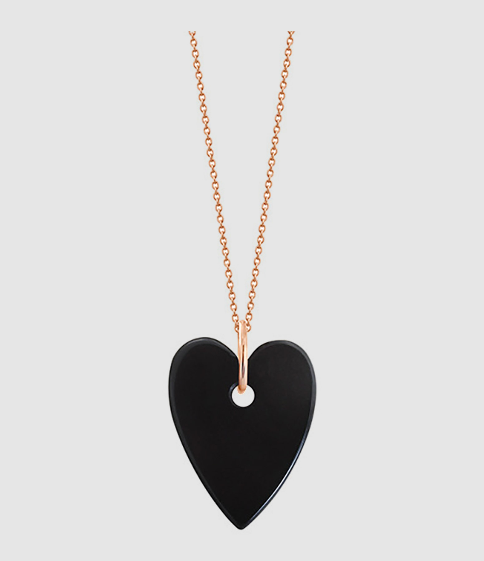 Collier sur chaîne en or rose avec pendentif cœur en onyx. Fermoir classique à ressort avec contre-anneau.