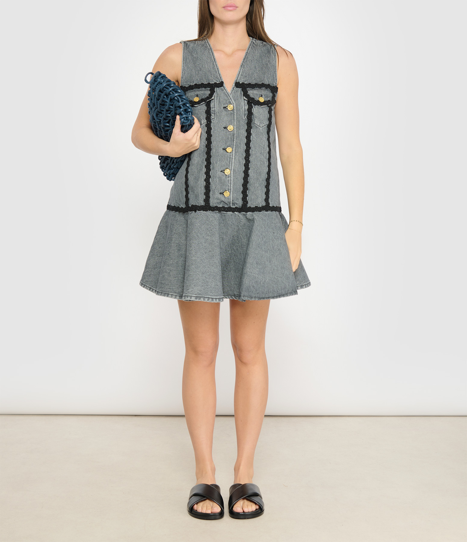 Ganni privilégie l'individu aux tendances éphémères et crée des pièces soignées et décontractées, parfaites pour toutes les occasions de la journée. La marque s'engage également pour la planète en choisissant ses matières avec soin et en veillant au fonctionnement responsable de ses usines afin de réduire au maximum son empreinte carbone.
