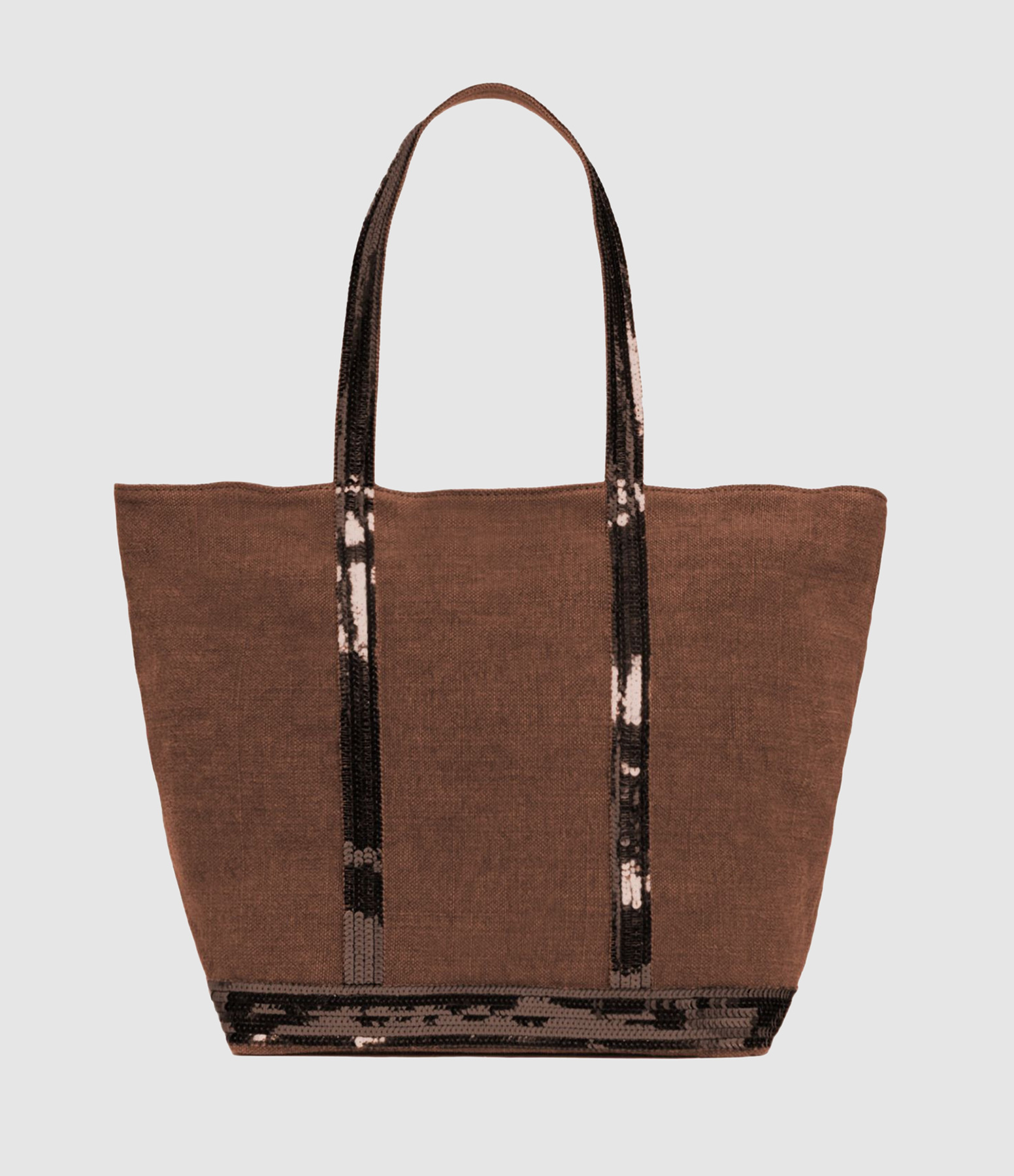 Parmi les créations emblématiques de Vanessa Bruno, le sac cabas occupe une place toute particulière. Ce sac en toile de coton simple, rehaussé d'une touche de sequins, petits disques de métal perforé cousu sur le tissu donnant un effet “paillettes”, est devenu un véritable compagnon du dressing féminin. Sa praticité en fait un accessoire indispensable pour toutes les femmes actives. Lulli vous propose une large sélection de sacs cabas, déclinés dans plusieurs couleurs variées allant des plus demandées telles que sable, noir, naturel, kaki… aux couleurs pastels estivales.