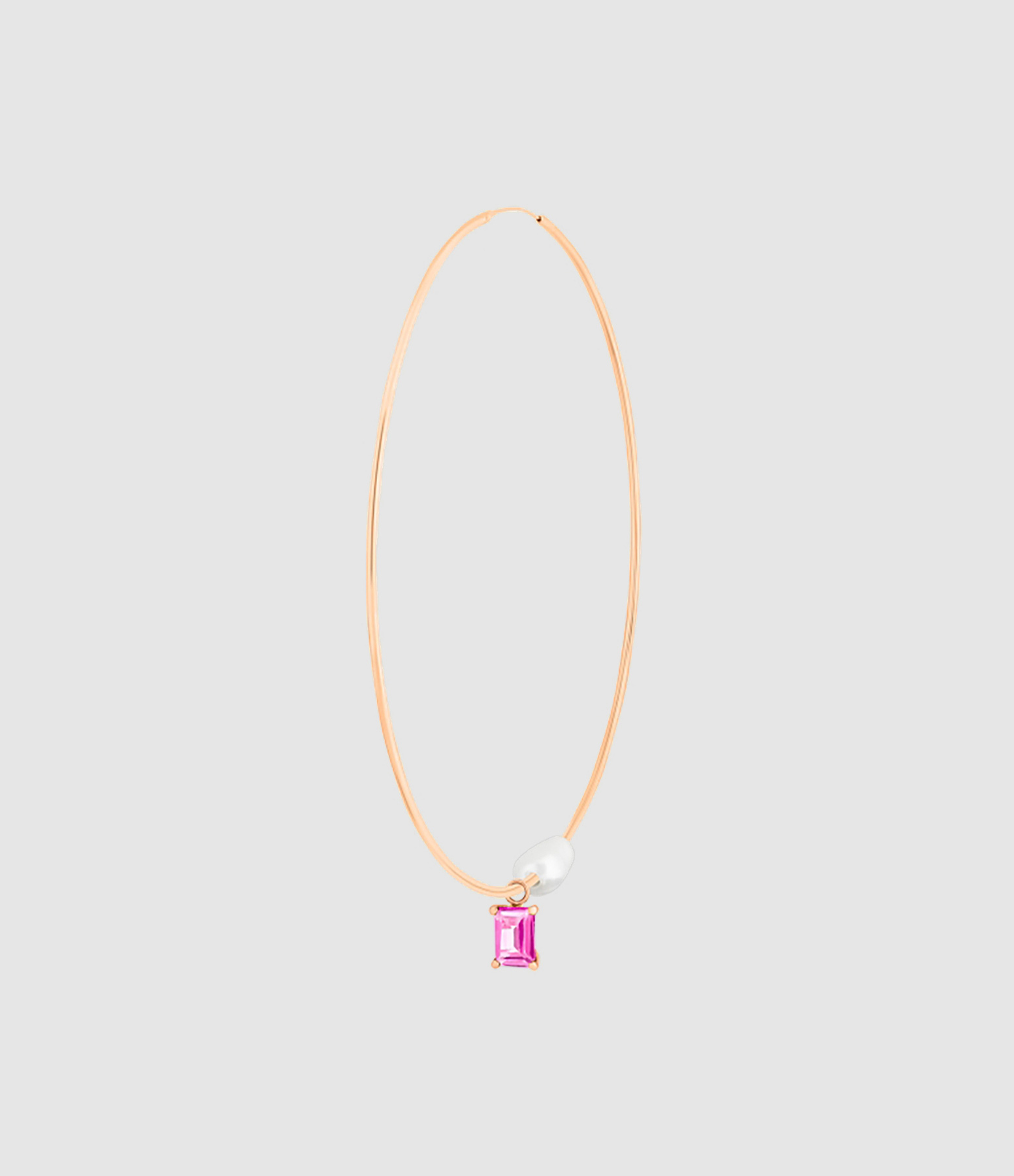 Boucle d'oreille créole en or rose, perle de nacre et topaze rose. Fermoir créole. Vendue à l'unité.