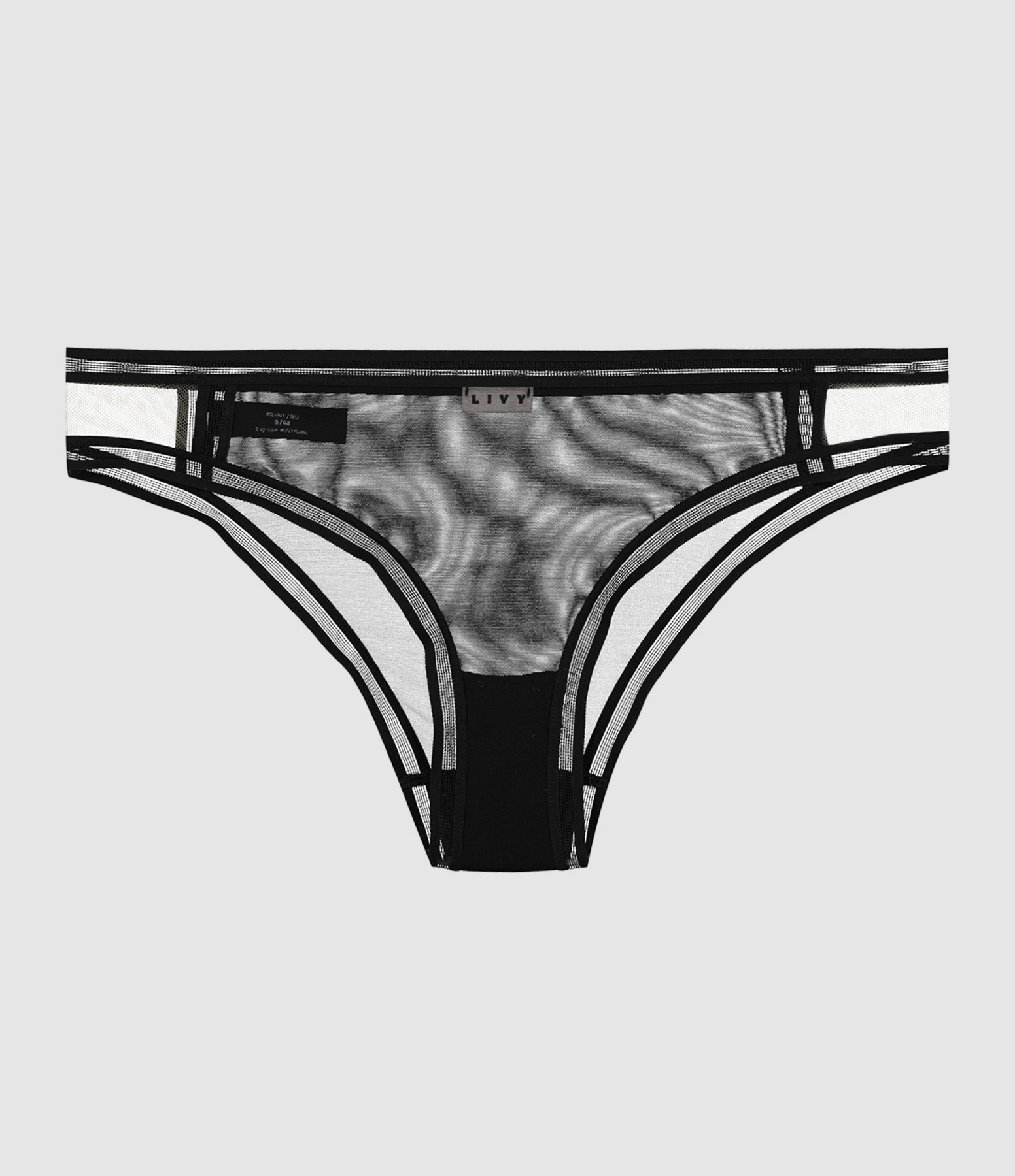 Culotte en tulle noire. Détails en tulle beige sur les cotés. Taille élastiquée. Fond doublé.