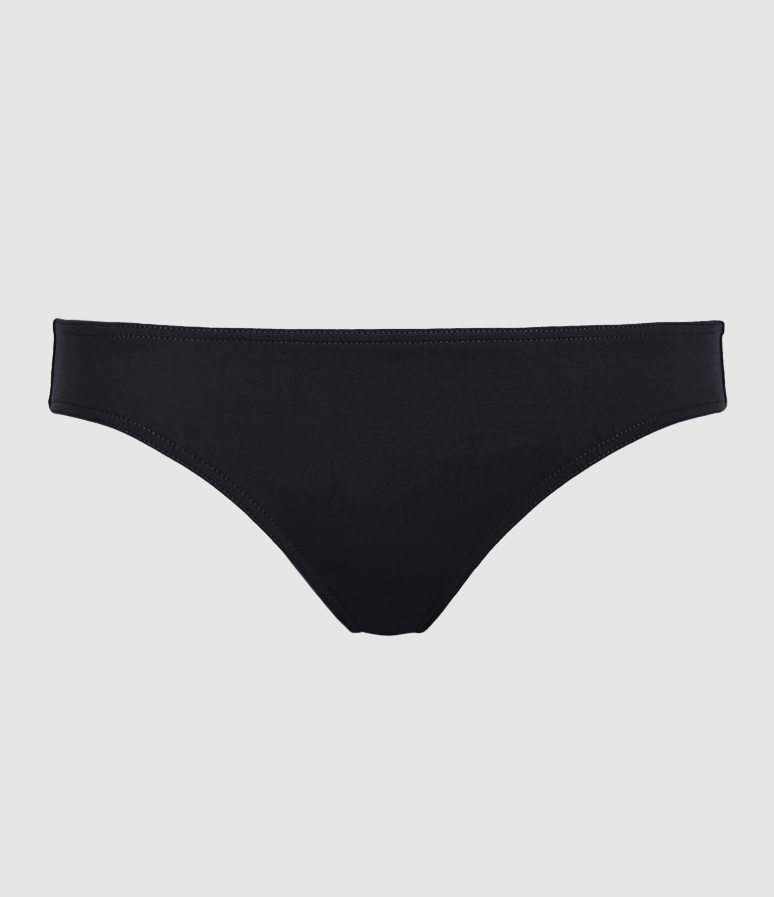 Culotte de bain noire. Entièrement élastiquée. Surpiqûres ton sur ton. Non doublée.