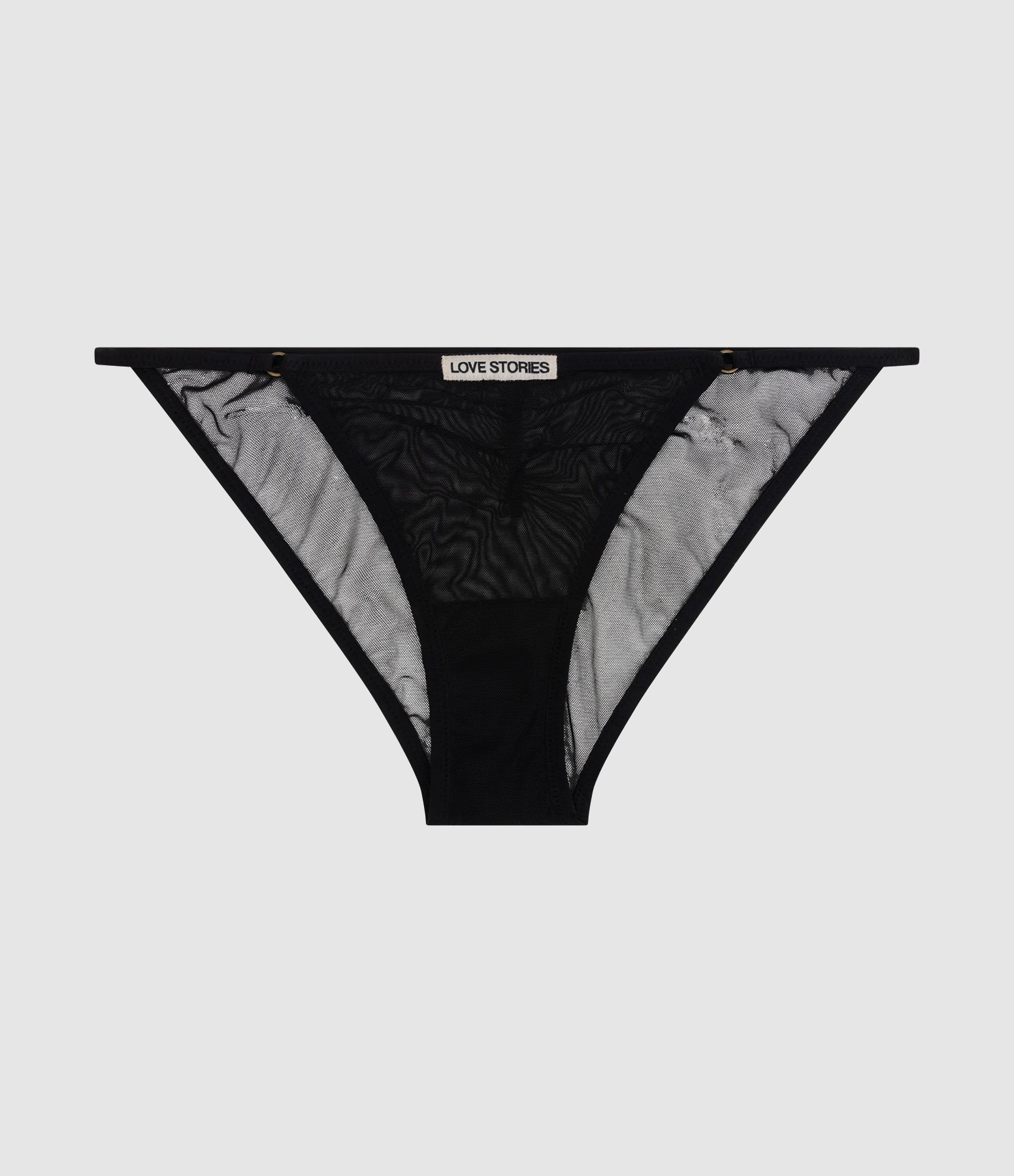 Culotte coupe moyenne, confectionnée dans une maille transparente.