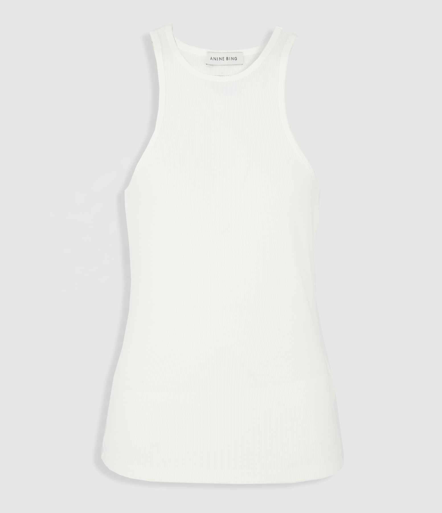 Débardeur côtelé écru. Logo brodé ton sur ton sur le devant.