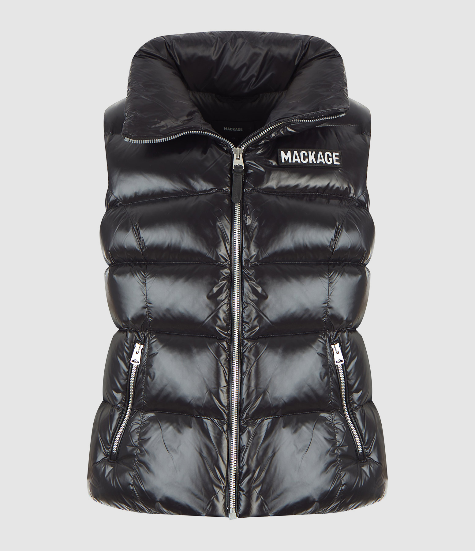 Doudoune sans manches noire. Empiècement "MACKAGE" scratché sur la poitrine. Fermeture zippée. Col montant. Deux poches zippées. Coupe droite. Base droite.