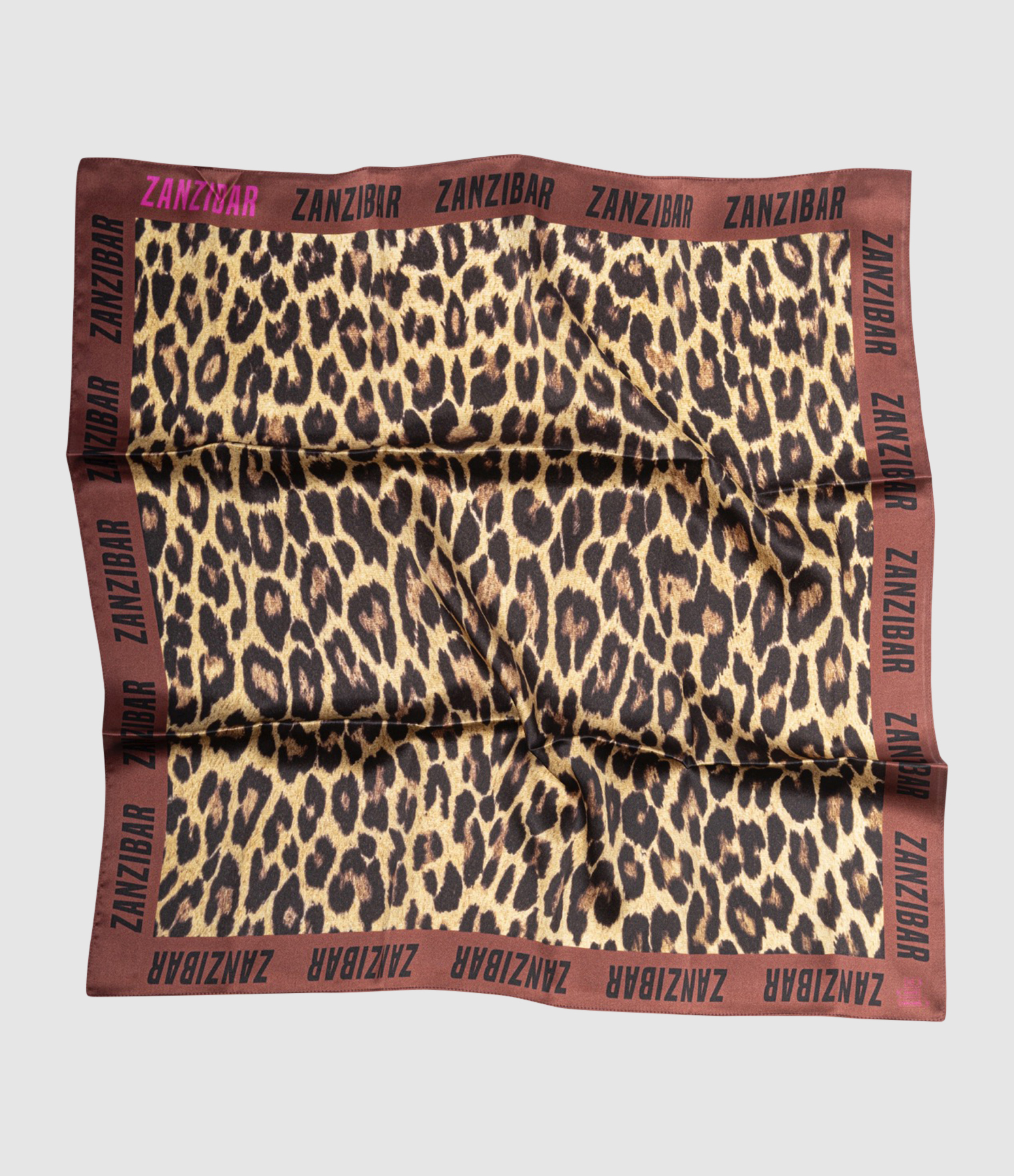 Ce n’est pas un léopard comme les autres, revisité dans un terracotta poudré avec l'inscription Zanzibar.