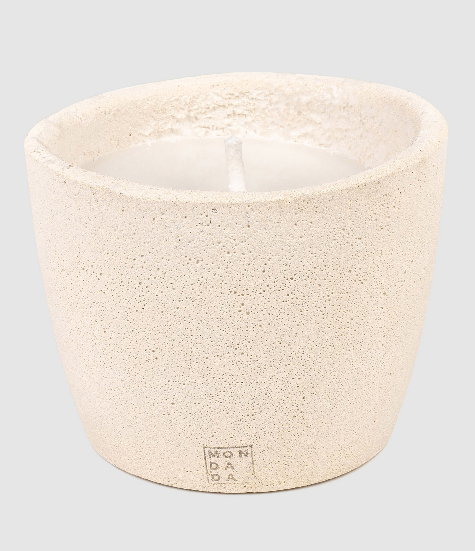 Bougie d'extérieur anti-moustique, une mèche, dans un pot en béton beige.