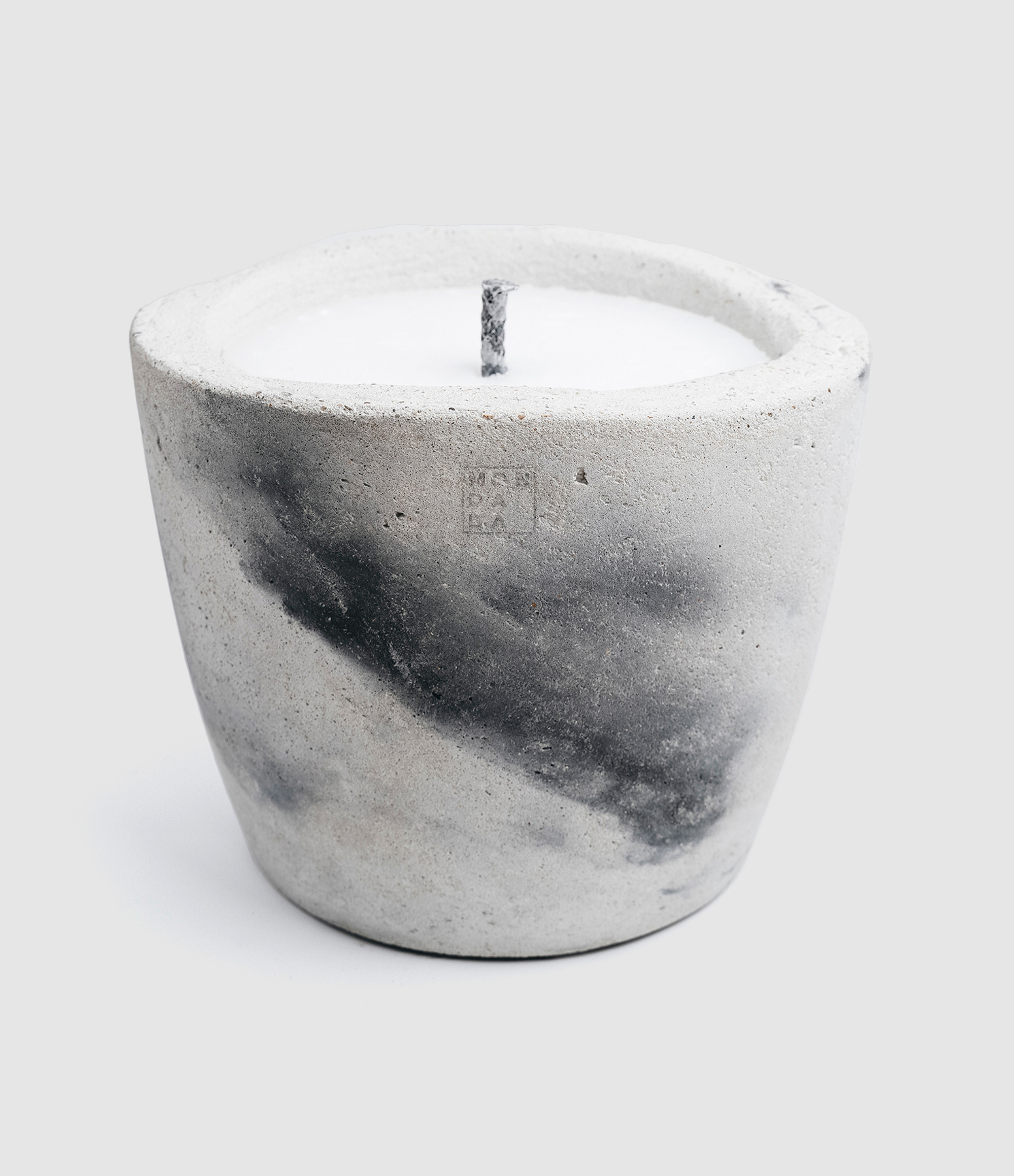 Bougie d'extérieur anti-moustique, une mèche, dans un pot en béton gris.