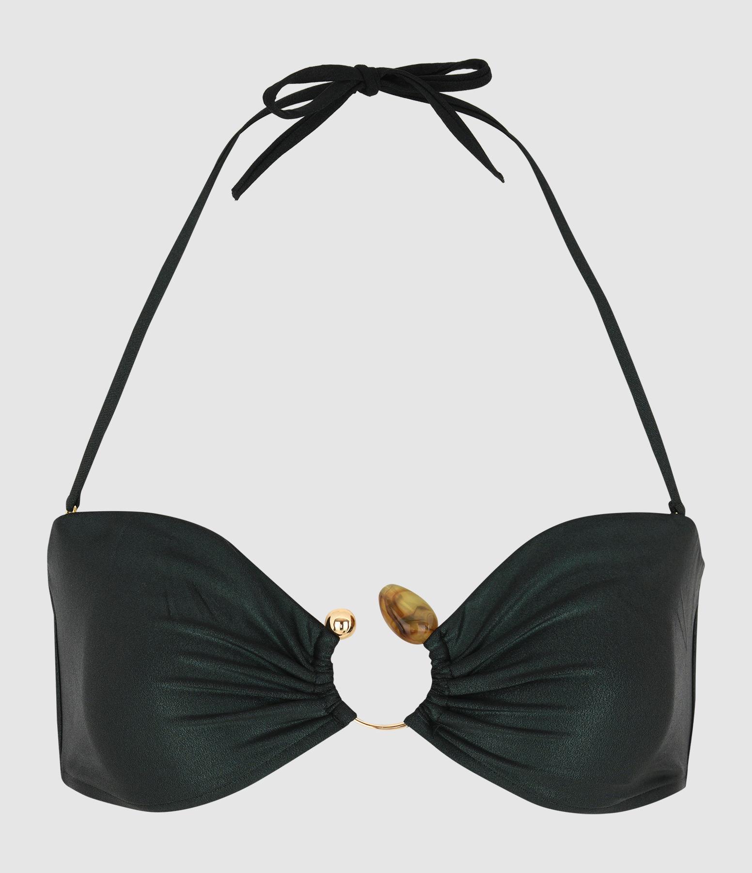 Le top bustier Emy est orné sur le devant d’un bijou en forme de "U" avec pierre, apportant une touche précieuse et distinctive.