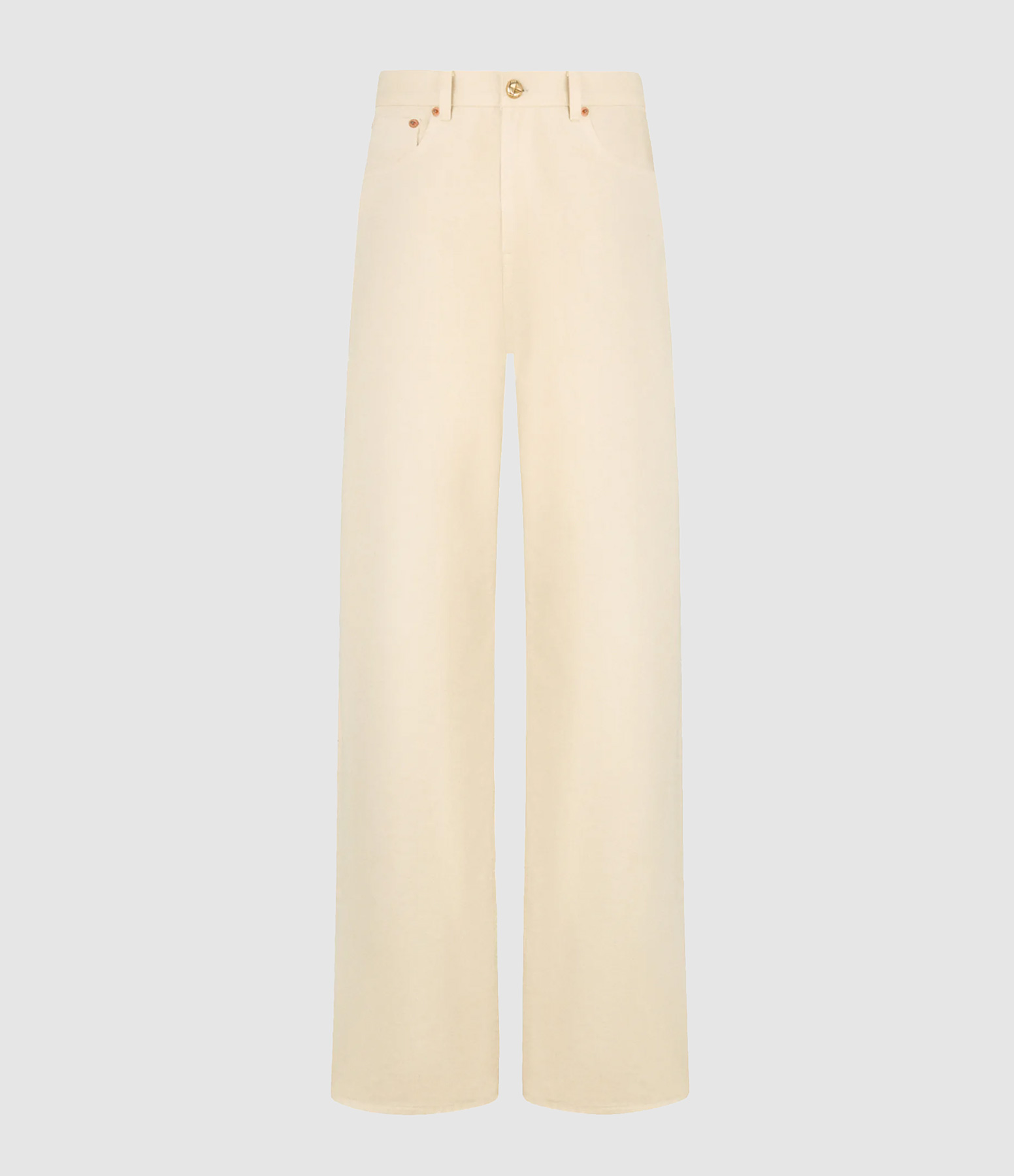 Jean beige taille haute à jambes larges. Passants de ceinture. Fermeture éclair et bouton dissimulés. Poches arrière ornées du logo Smiley de la marque.