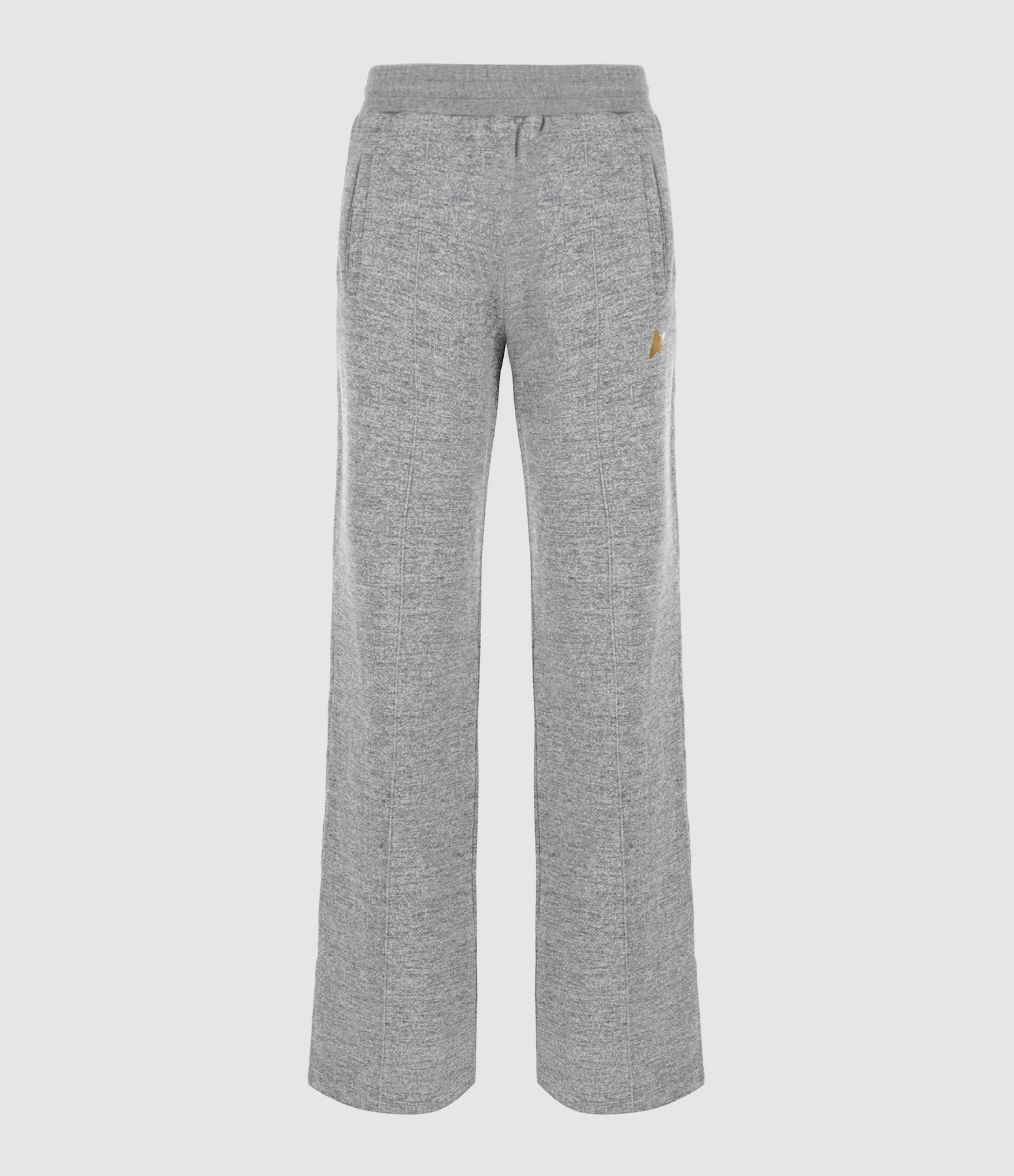 Pantalon de jogging gris chiné. Étoile doré à l'avant. Taille élastiquée. Lien de serrage à l'intérieur. Deux poches fendues et une poche plaquée à l'arrière.