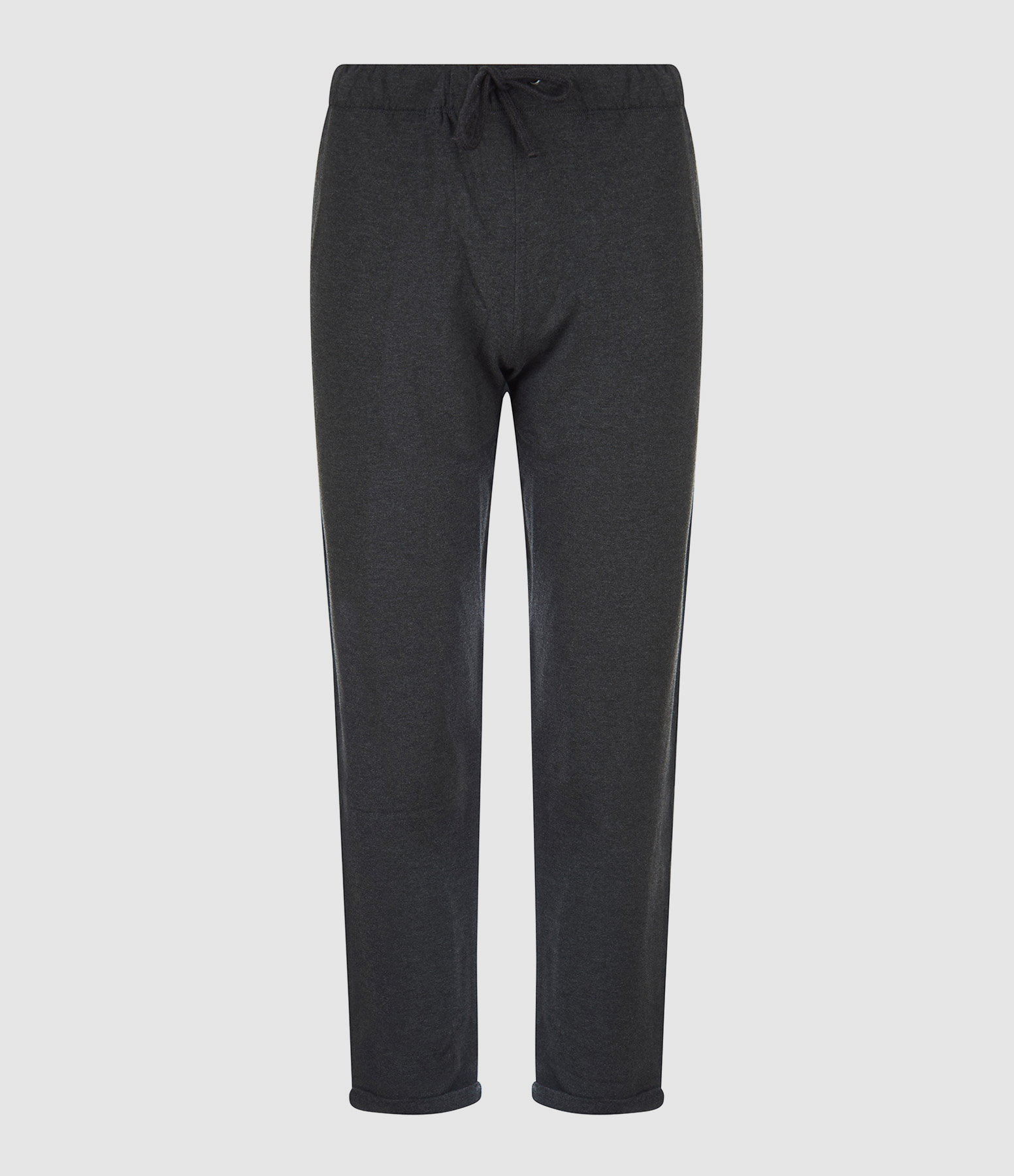 Jogging gris anthracite chiné. Taille élastiquée avec liens de serrage. Coupe droite. Deux poches fendues sur les côtés.