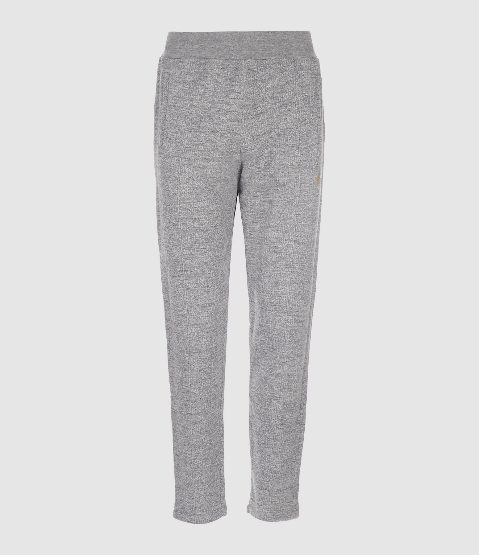 Pantalon de jogging gris chiné, pour homme. Étoile doré à l'avant. Taille élastiquée. Lien de serrage à l'intérieur. Deux poches fendues et une poche plaquée à l'arrière.