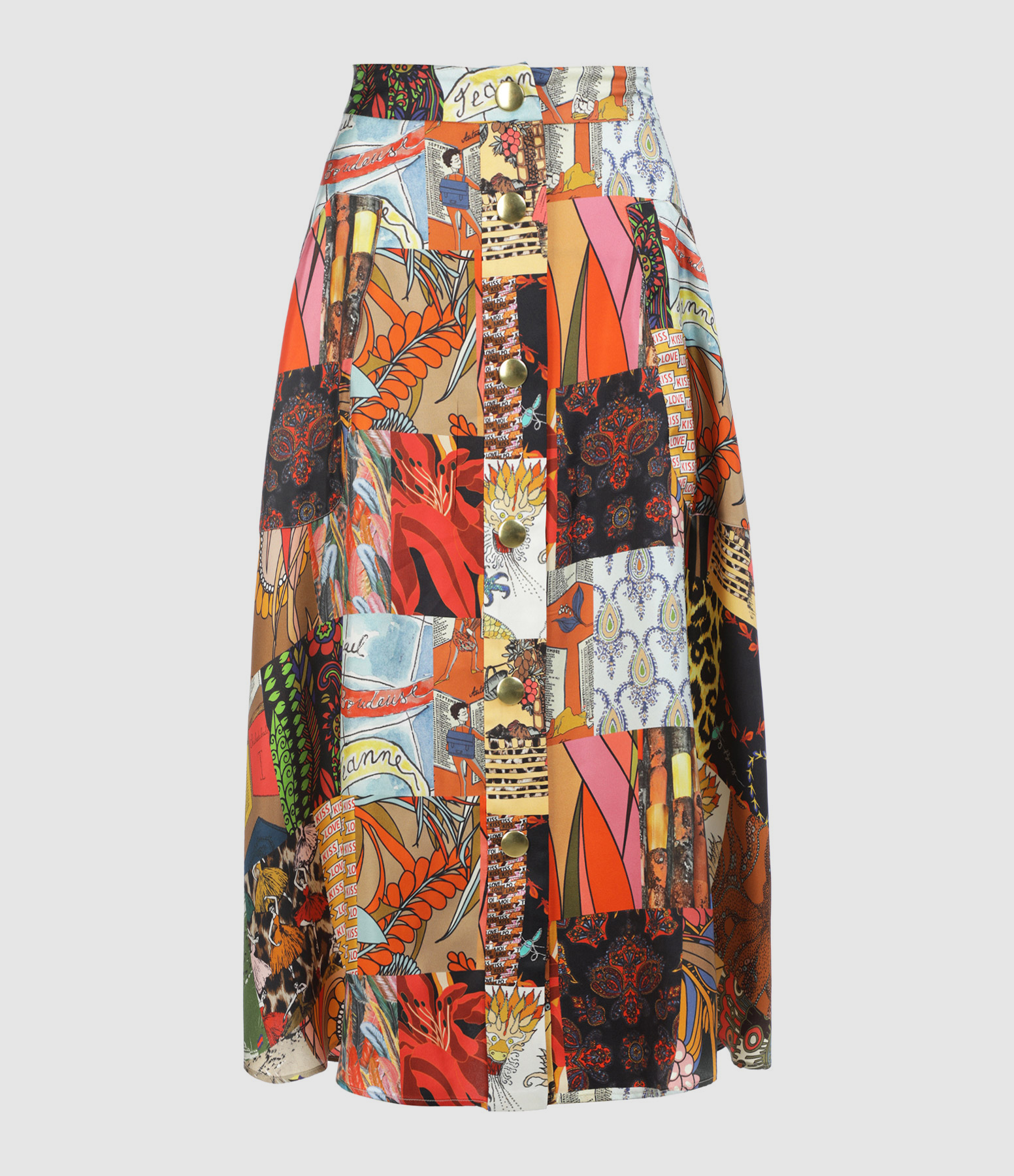 LA PRESTIC OUISTONJupe 1980 Soie Imprimé Patchwork