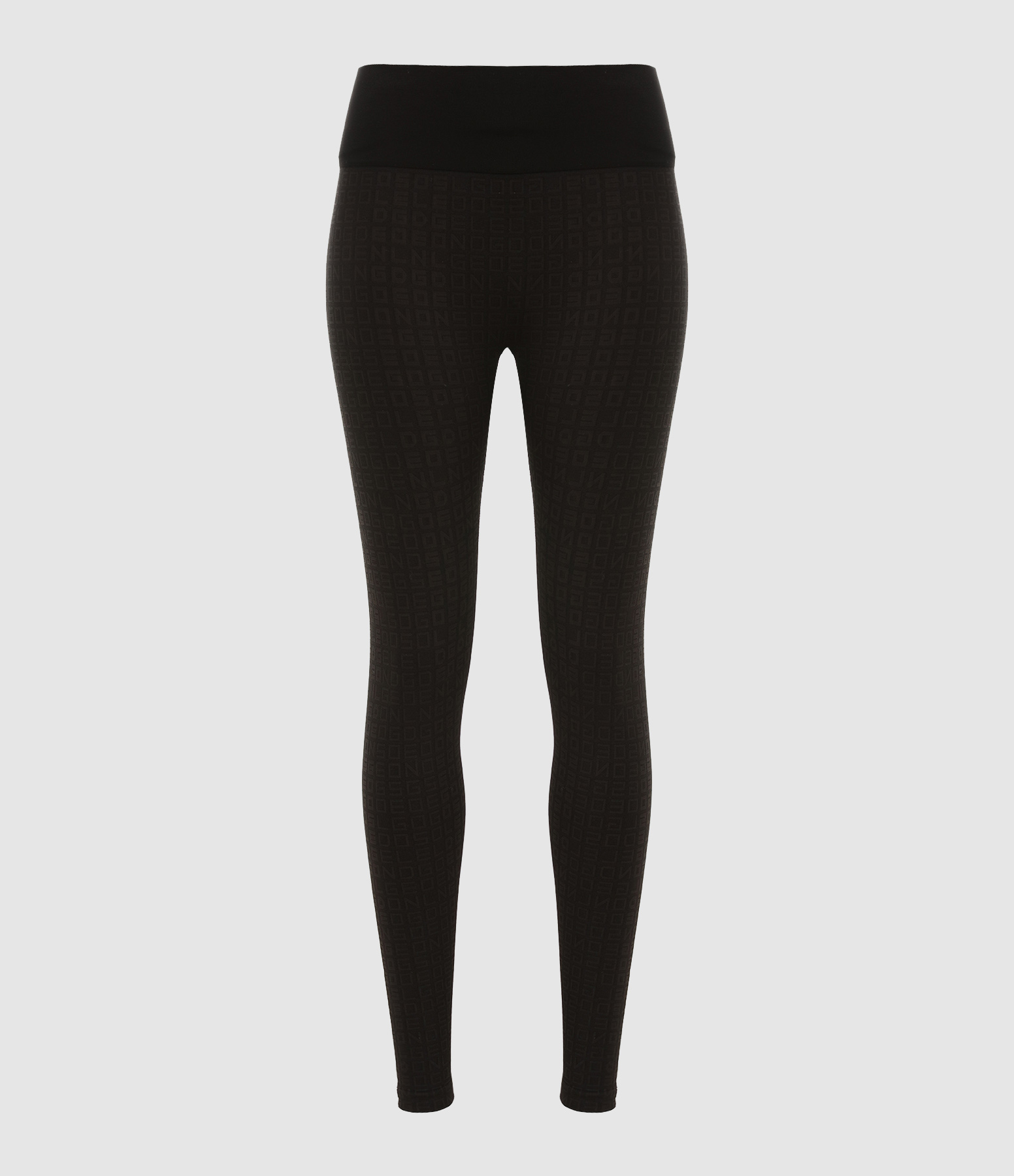 Leggings stretch noir à imprimé GOLDEN ton sur ton. Large ceinture élastique. Coupe près du corps. Base droite.