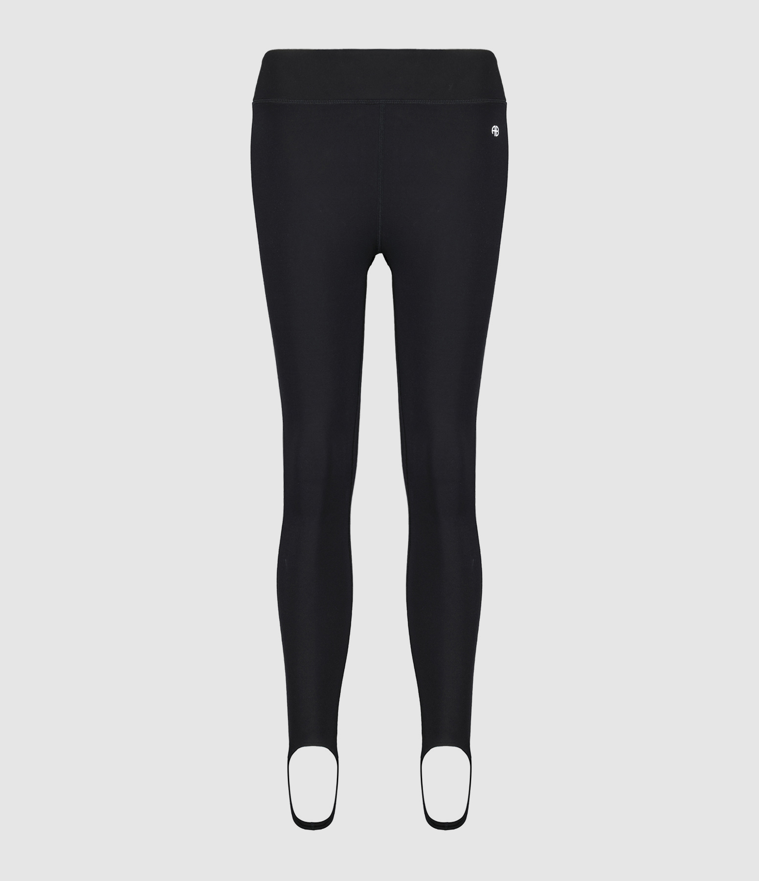 Legging noir avec logo Anine Bing à l'avant et à l'arrière. Etrier pour meilleur maintien. Taille élastiquée.