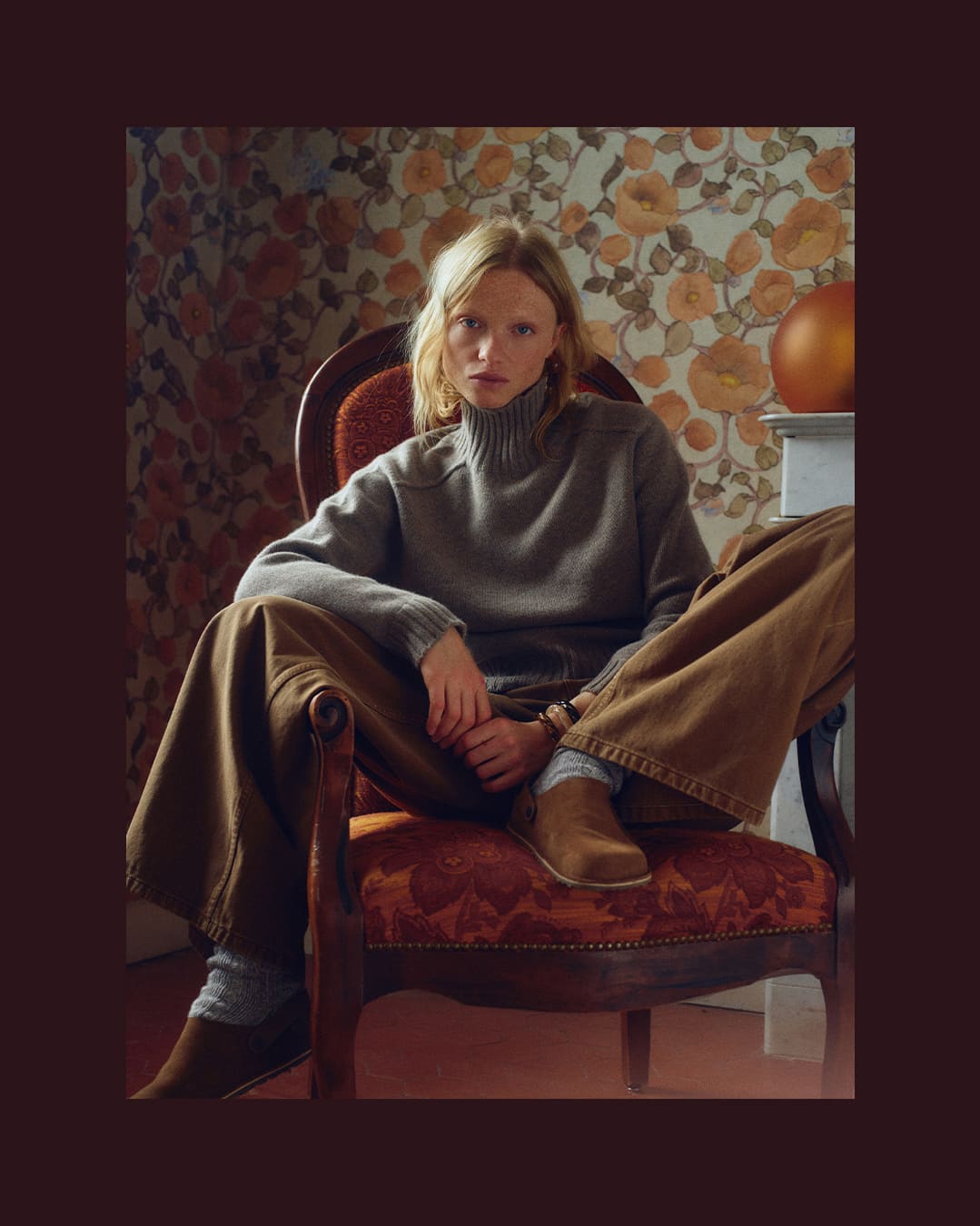 Heritage Edit capte cette ambiance suspendue. Un manteau long, un pull en laine, une paire de chaussures en cuir et l’allure s’impose, sobre et pour autant pleine d’âme.