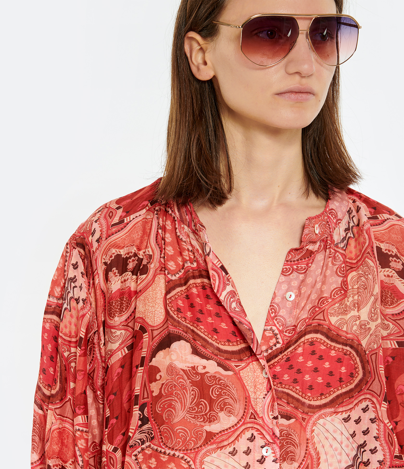 Lunettes de soleil rose gold. Forme aviateur. Inscriptions ISABEL MARANT sur la tempe gauche. Verres dégradés.