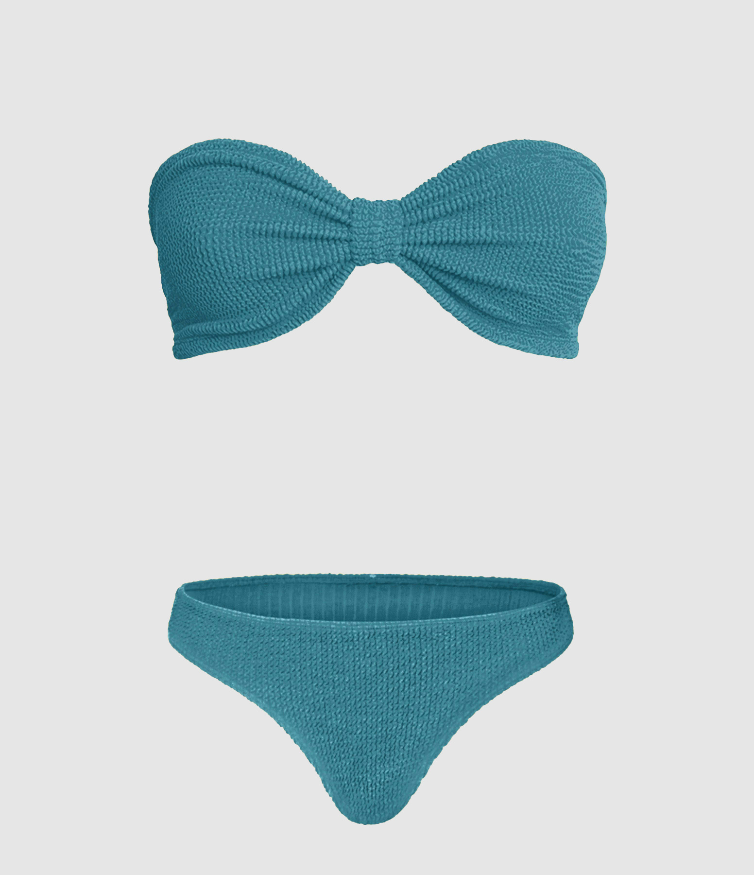 Maillot de bain deux pièces en tissu extensible. Haut bandeau. Culotte taille mi-haute. Doublé.