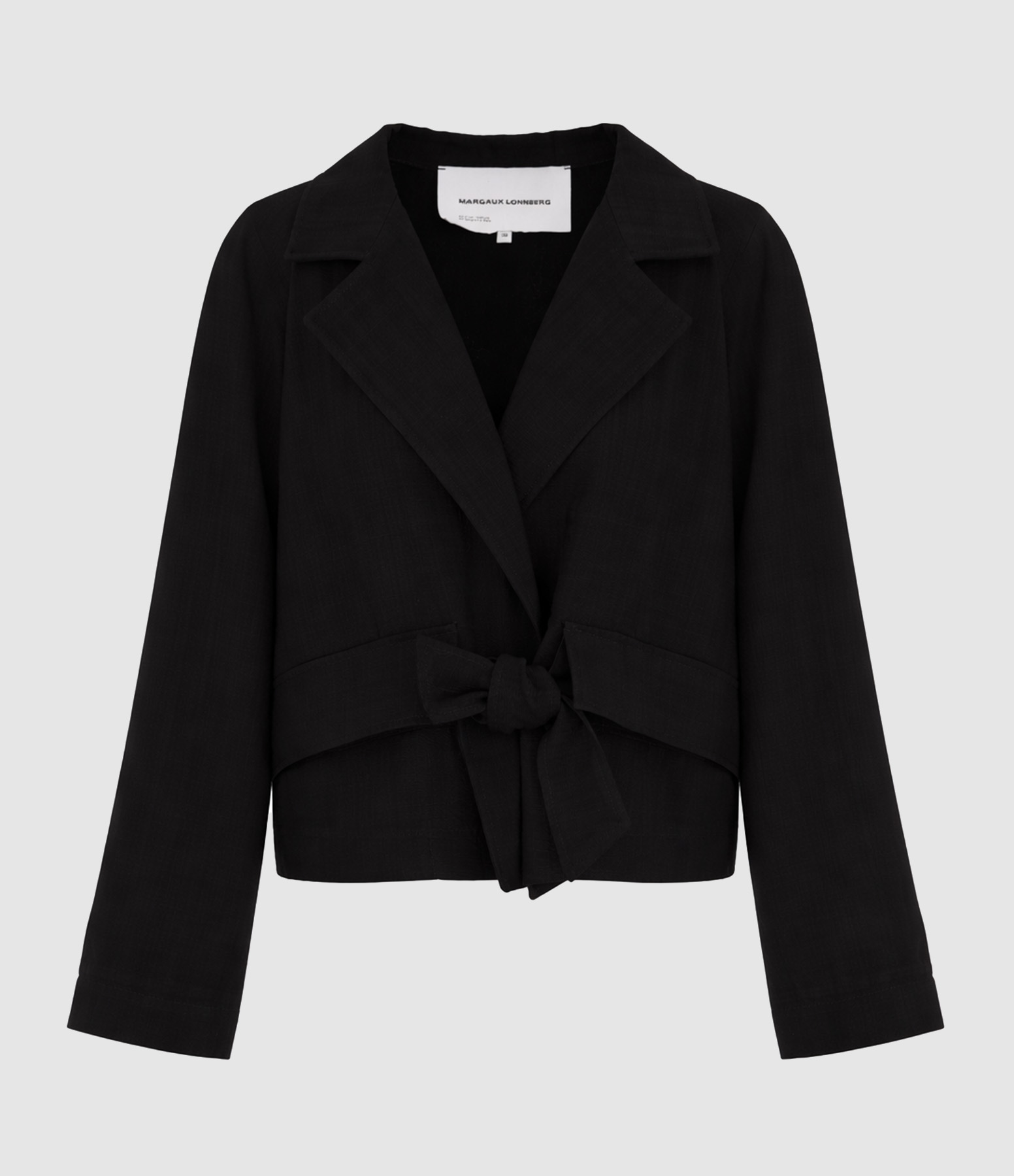 Veste légère à encolure ouverte, avec fermeture possible sur le devant grâce à une ceinture. Elle présente une coupe ample avec des manches longues, une construction type cape au dos avec un empiècement flottant, une taille resserrée par des fronces au dos, une base droite et une longueur hanches.