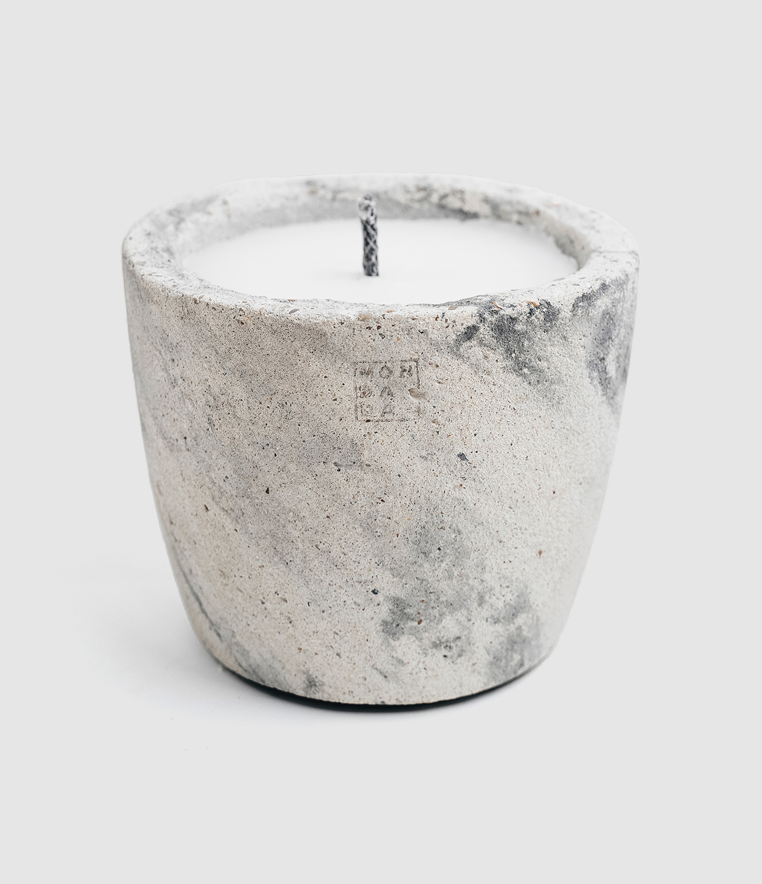 Bougie d'extérieur anti-moustique, une mèche, dans un pot en béton écru.
