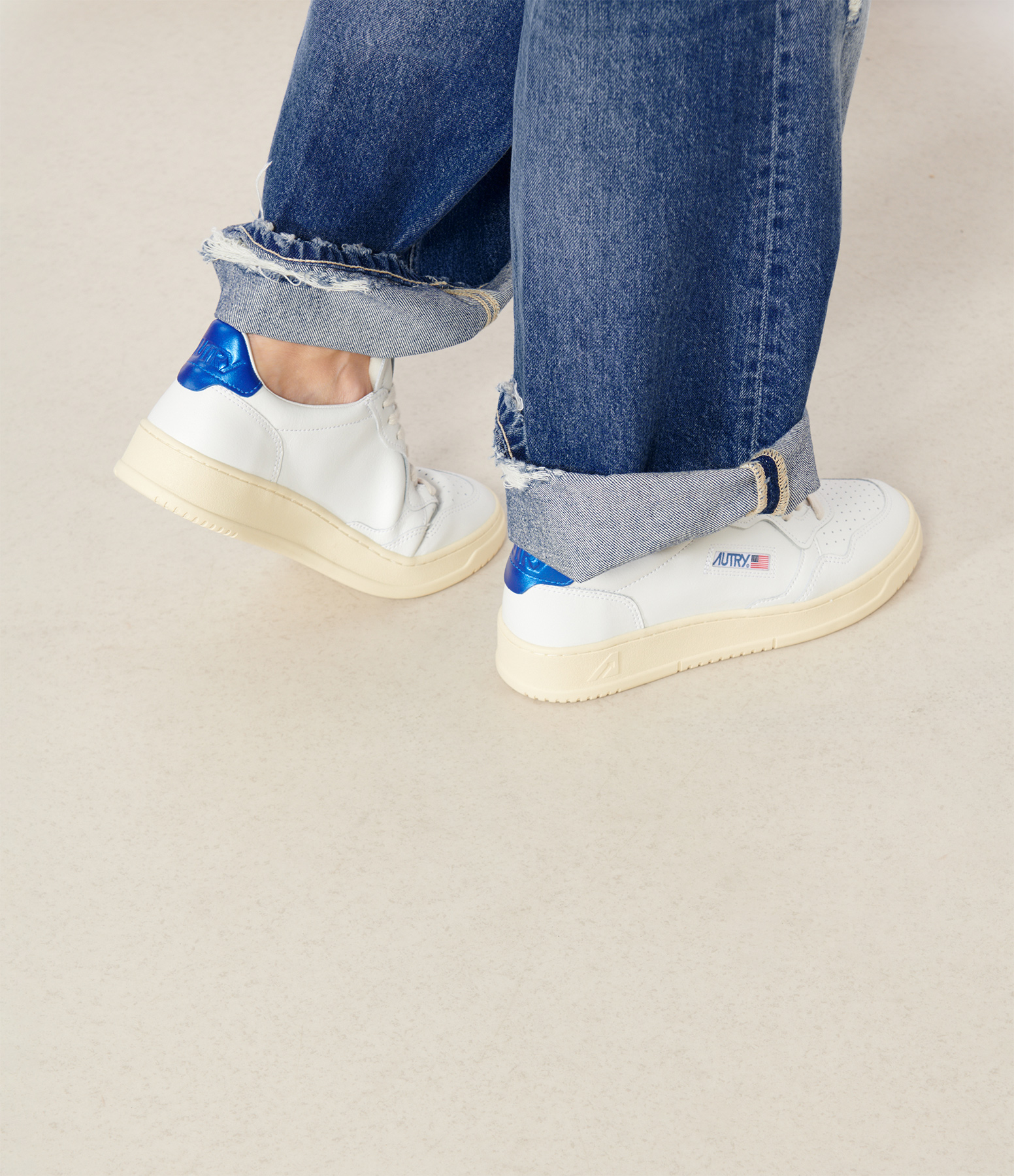 Baskets Medalist Cuir Blanc, Bleu