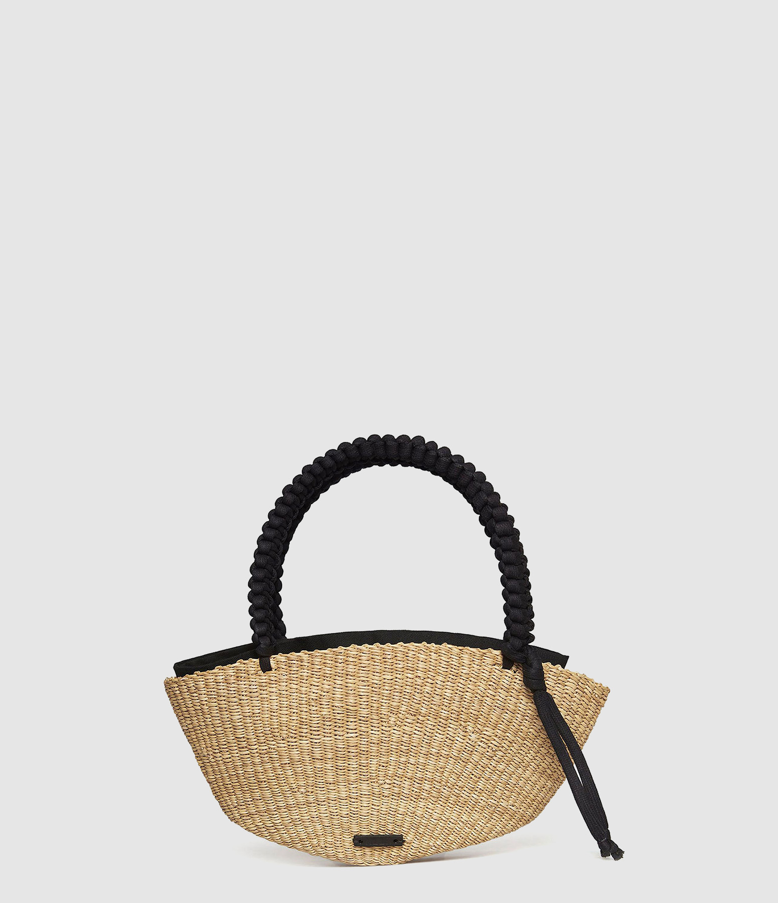 Petit panier en paille avec hanse tressée noires,