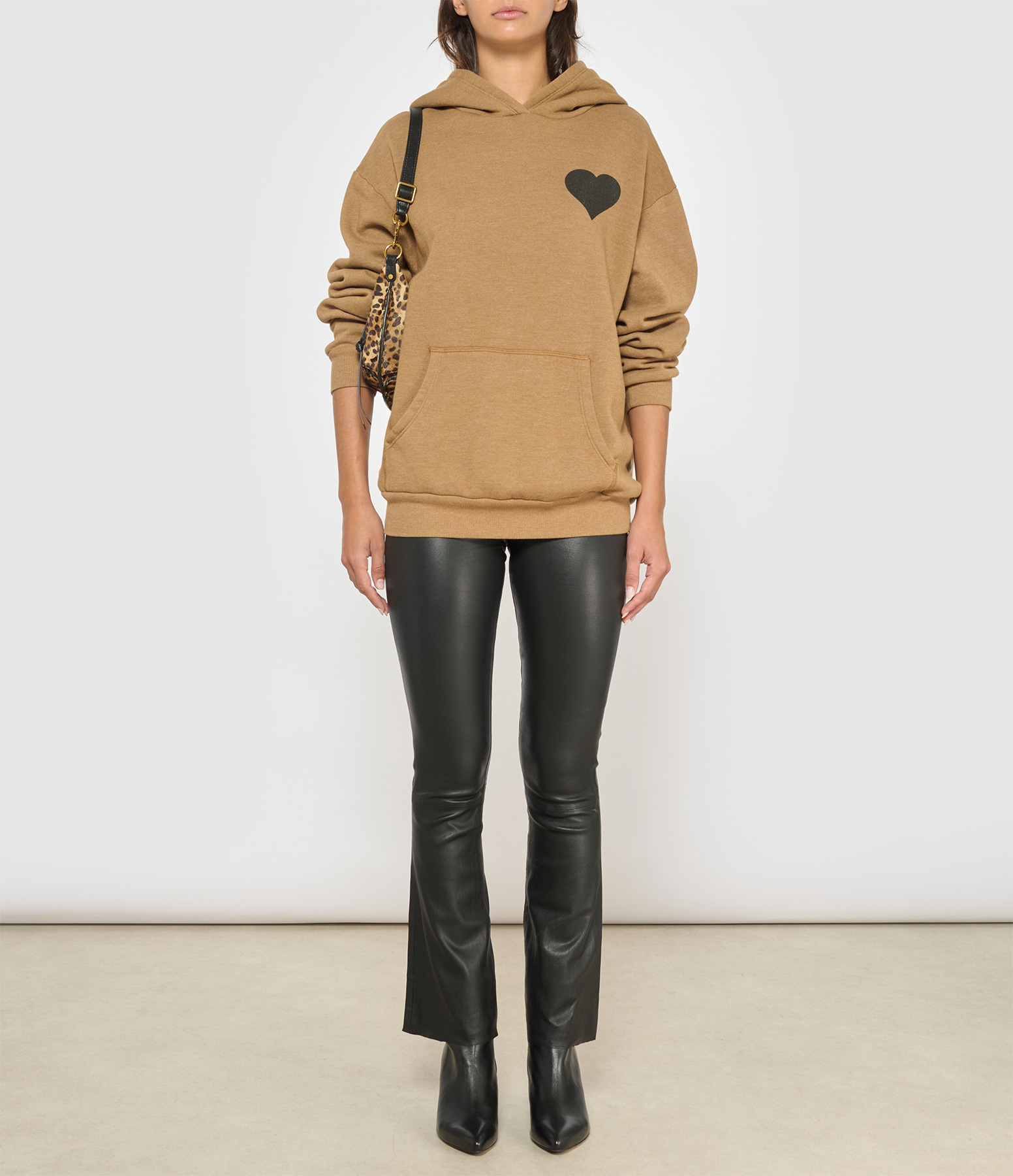 Pantalon en cuir d'agneau noir satiné près du corps style legging. Ceinture droite taille haute élastiquée.