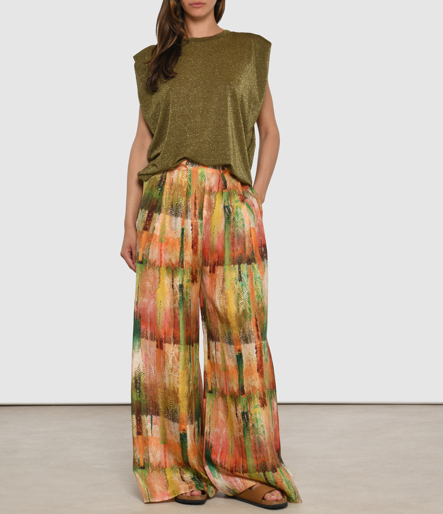 Pantalon fluide. Taille élastiquée. Deux poches à l'avant. Coupe fluide. Base droite.