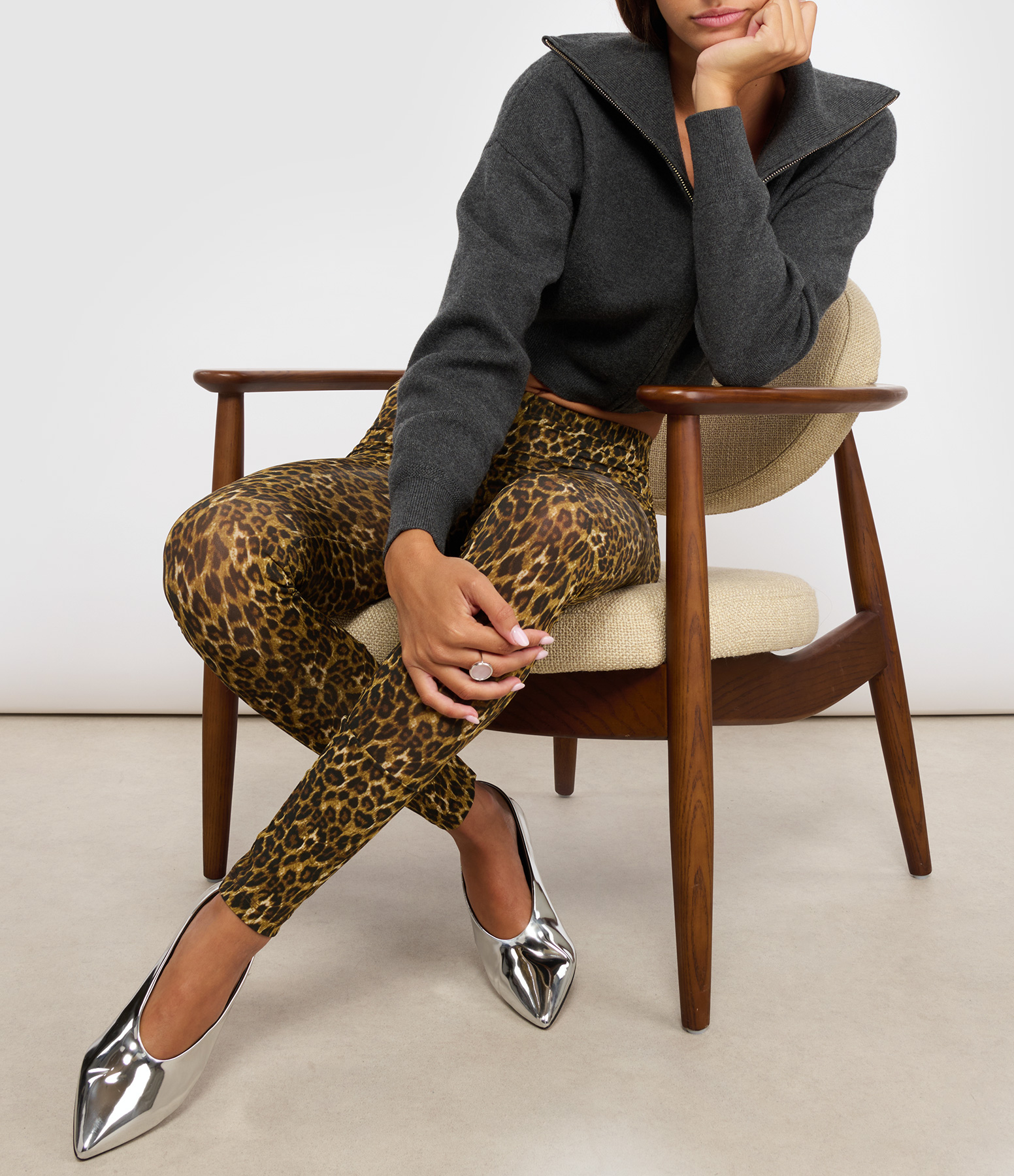 Pantalon legging près du corps. Tissus stretch. Imprimé léopard.