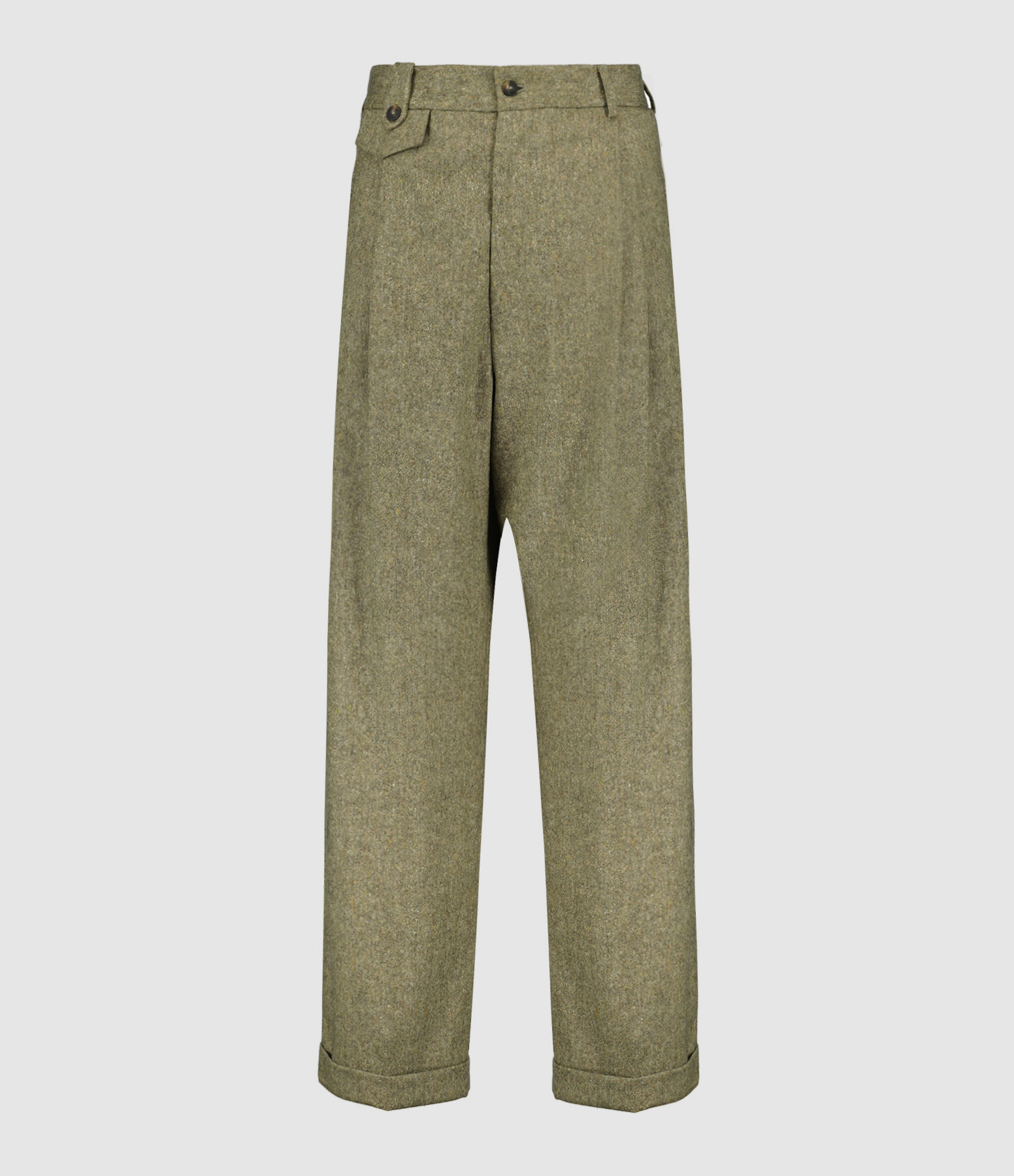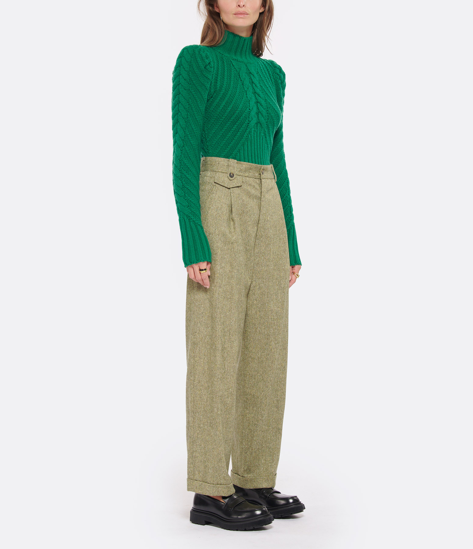Pantalon de tailleur en laine beige chiné. Deux poches côtés et une poche à l'arrière. Taille haute. Doublé.