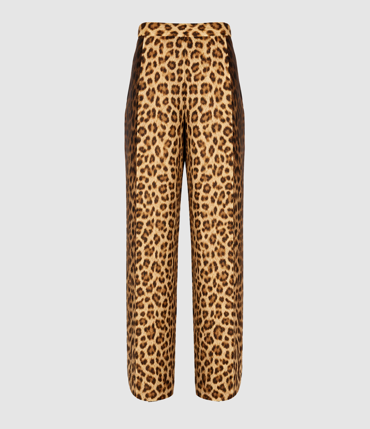 Pantalon fluide pure soie, à imprimé animalier. Taille ajustée avec plis marqués sur le devant.