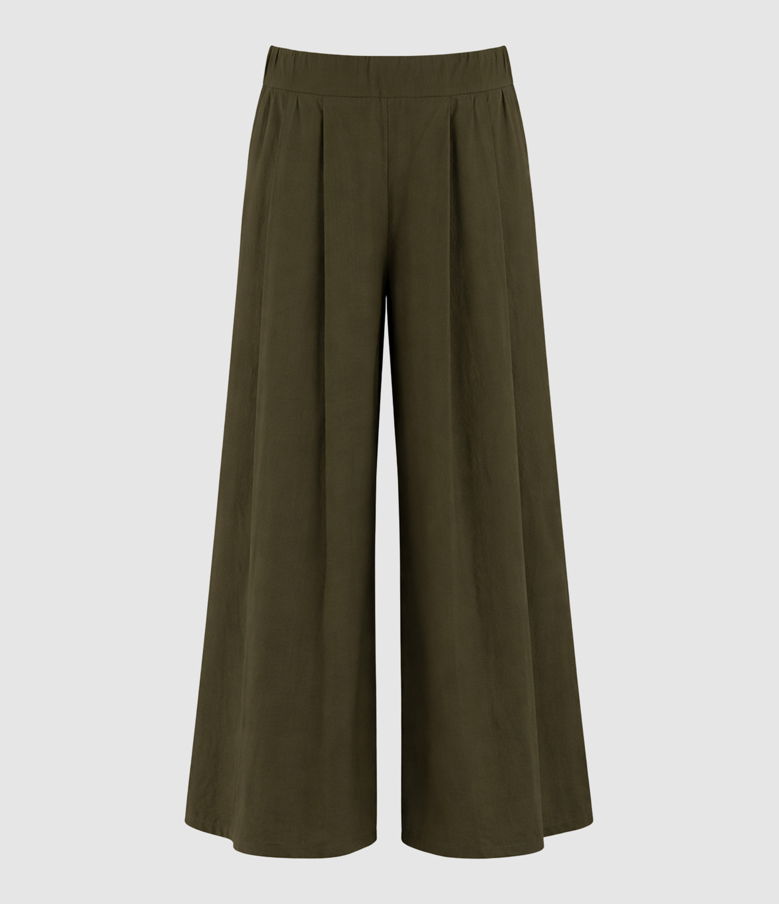 Pantacourt à plis en coton vert. Taille élastiquée. Coupe large.