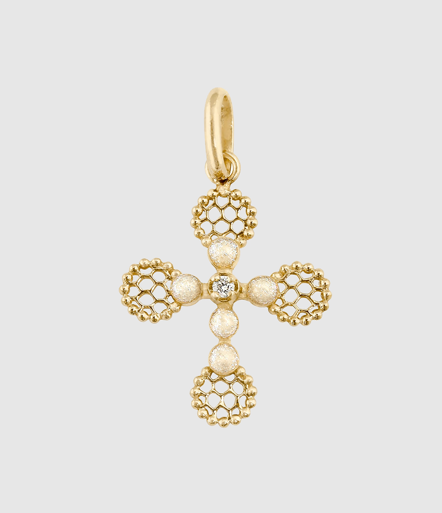 GIGI CLOZEAUPendentif Croix Dentelle Résine Diamants Or Jaune