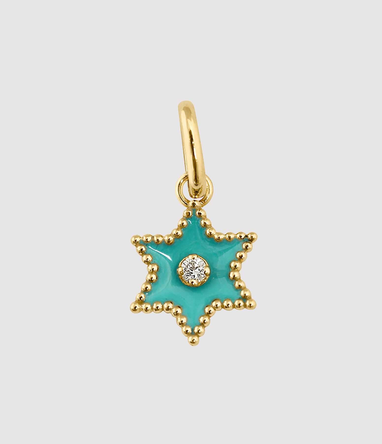 Pendentif médaille Étoile en or jaune agrémenté de résine et un diamant.