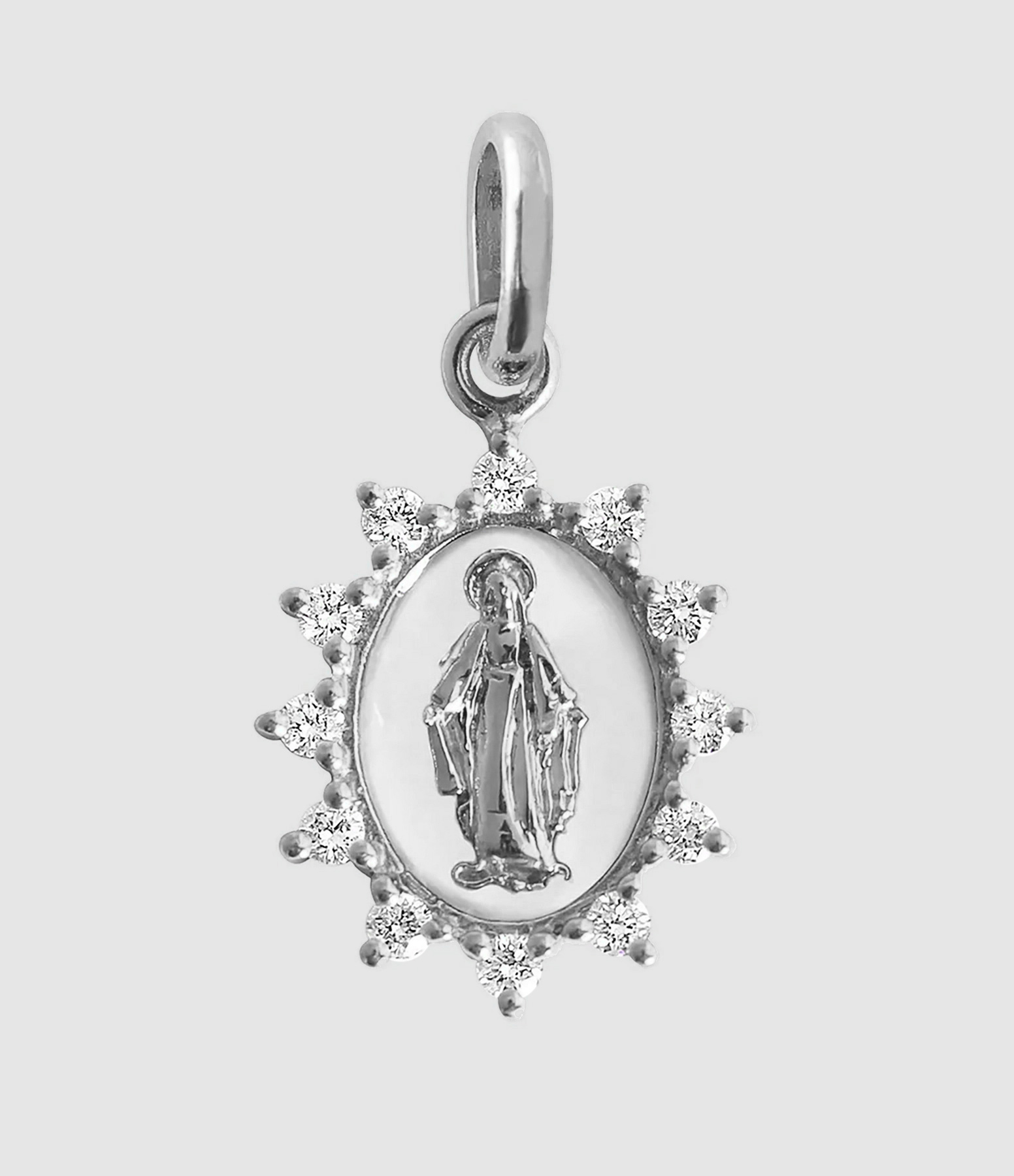 Pendentif médaille Madone serti de 12 diamants blancs.