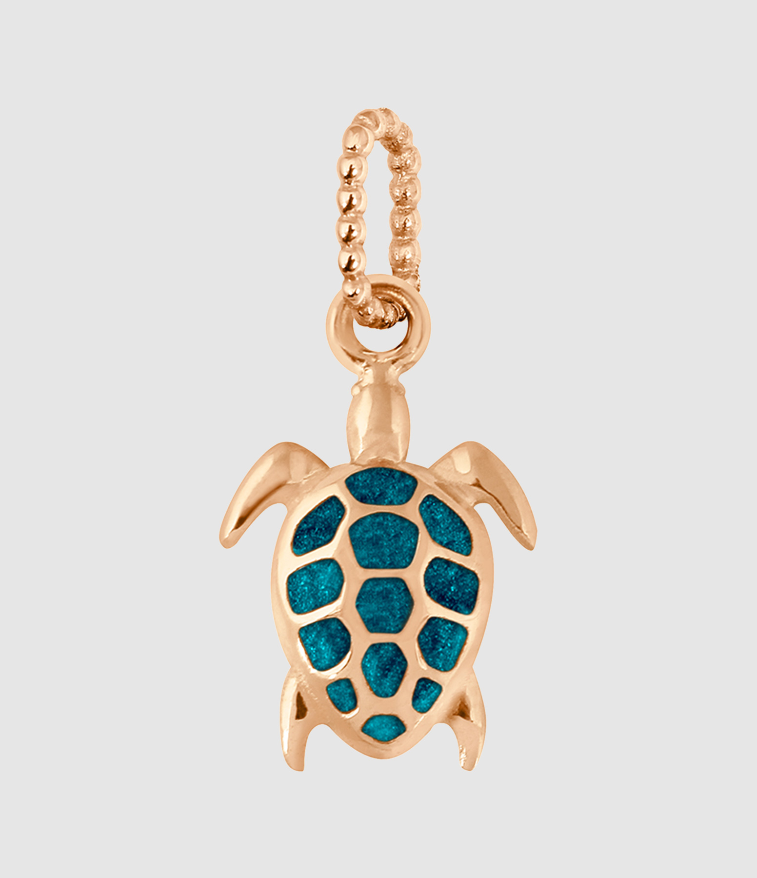 Pendentif tortue en or blanc, jaune ou rose et résine.