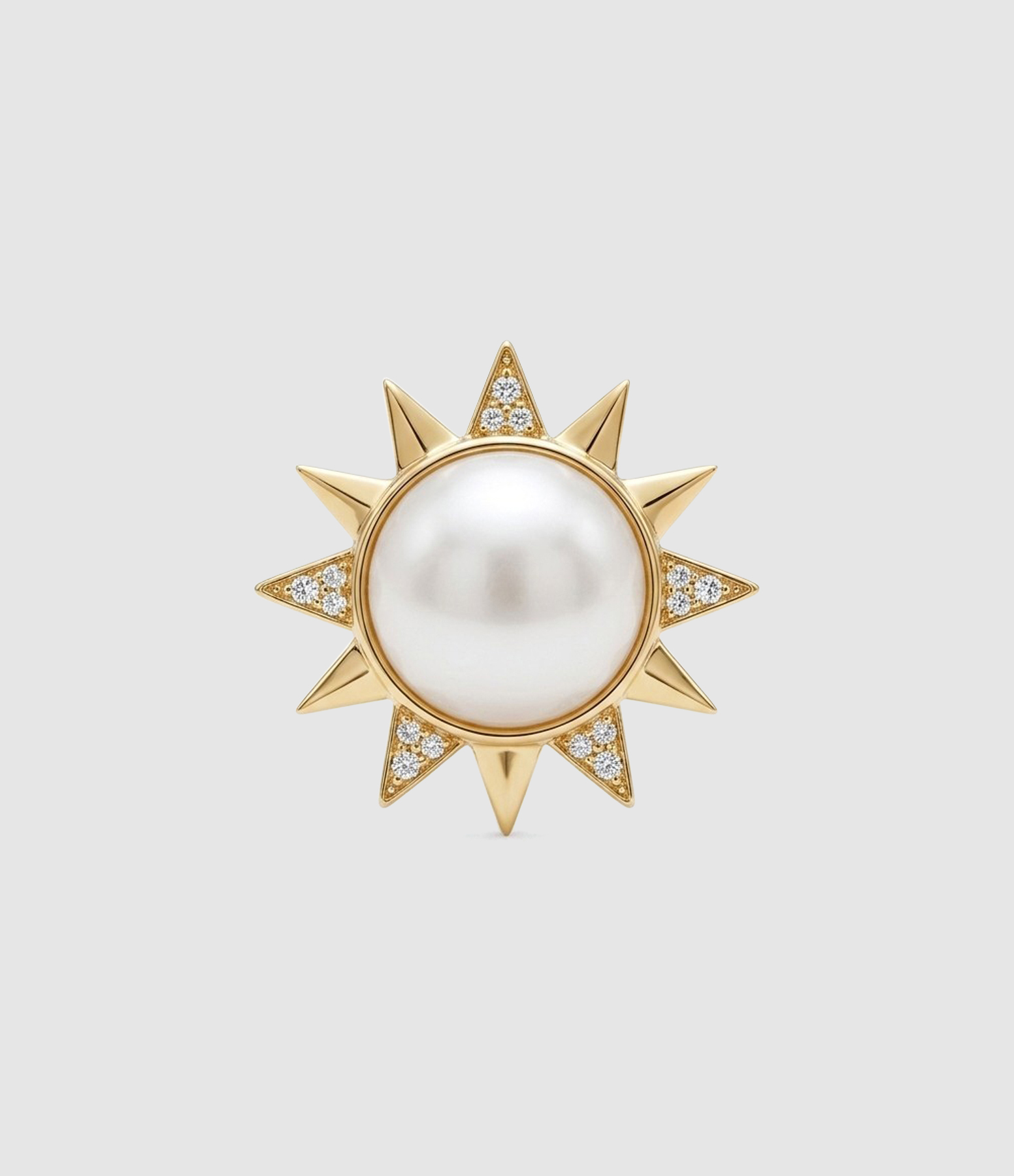 Pins en forme de soleil, orné d'une perle blanche au centre et de strasses.