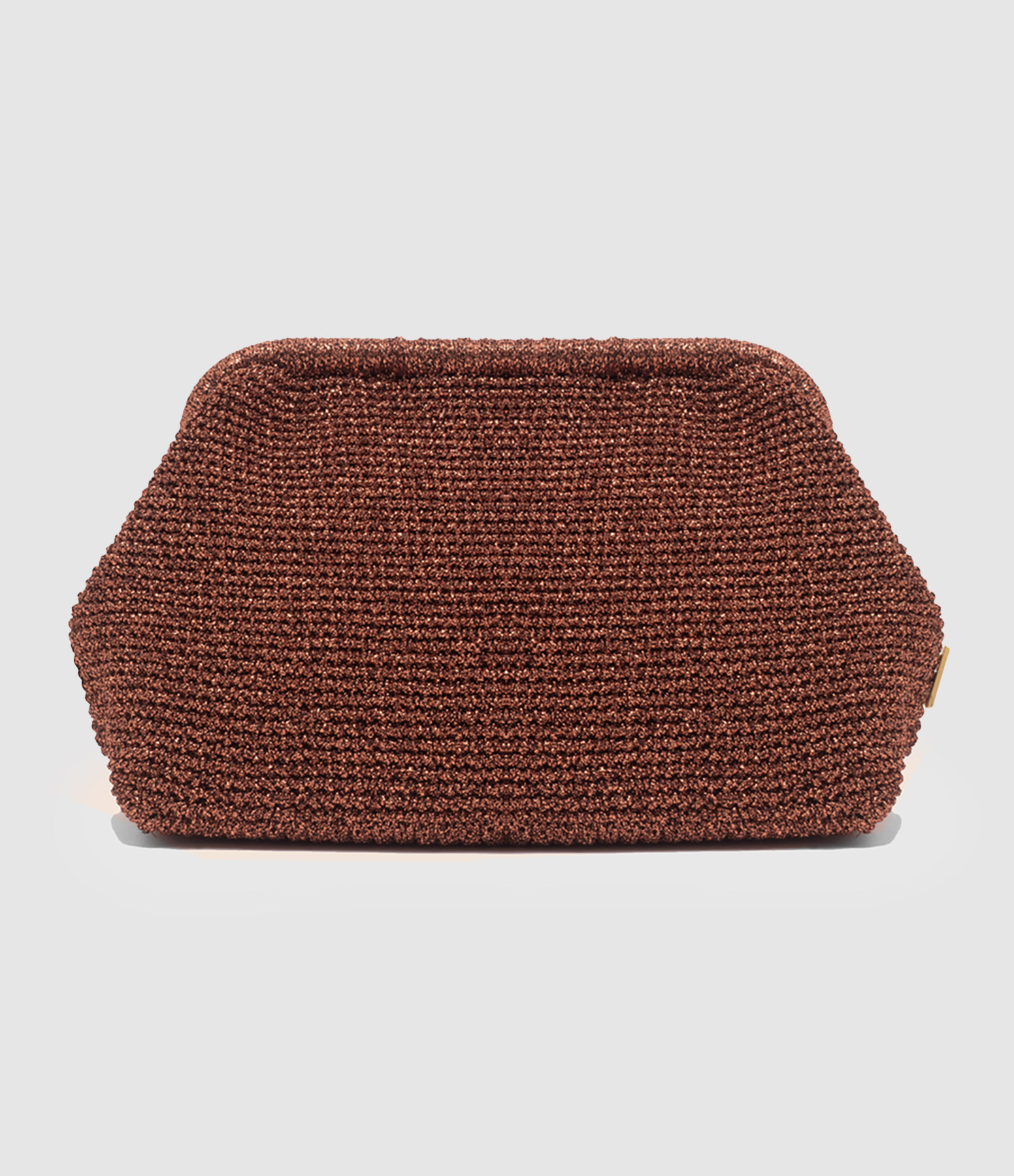 Sac bourse en lurex rouge, entièrement crocheté à la main. Compartiment unique, fermeture à clapet. M de Mizele doré sur le côté de la pochette.