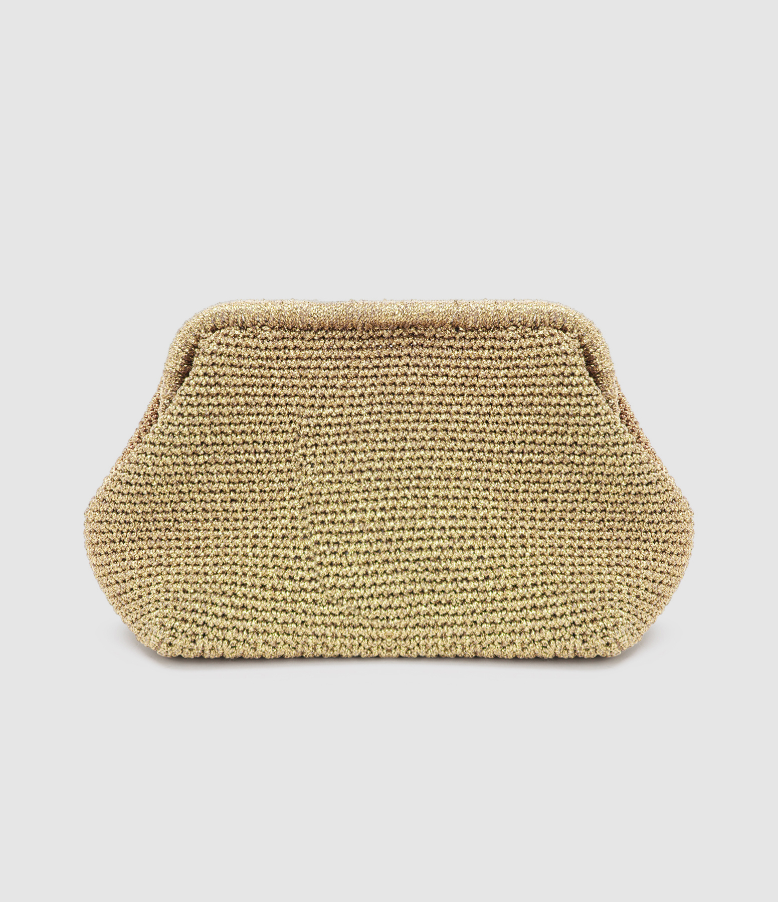 Petite pochette en lurex doré pailleté ajouré. Fermoir cliquet.